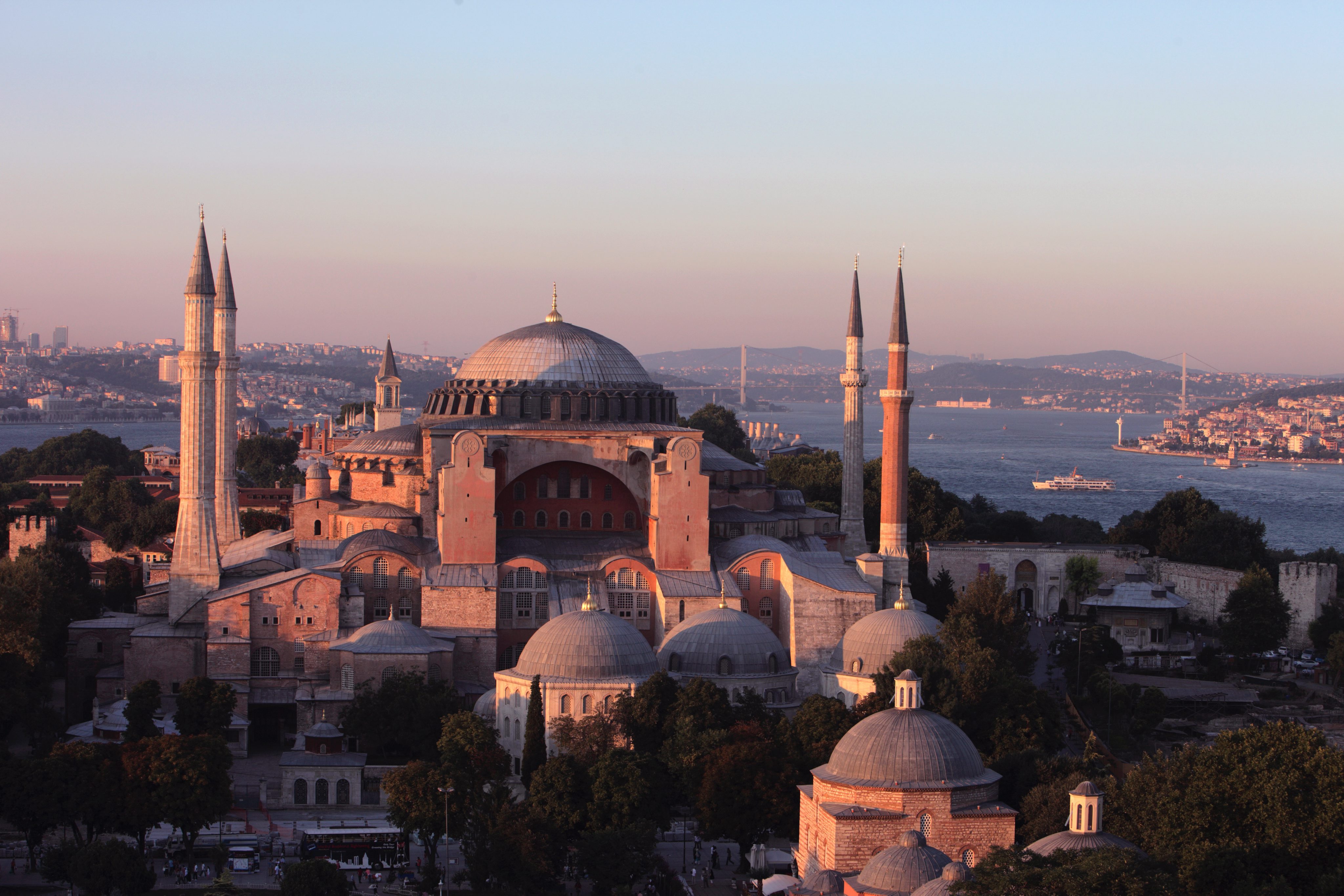 لأكثر من 1000 عام، كانت تُعتبر آيا صوفيا أكبر كنيسة مسيحية في الوجود. بناها الإمبراطور البيزنطي جوستنيان الأول، ولقد شهدت آيا صوفيا العديد من التغييرات على مر السنين. لا تزال آيا صوفيا قائمة، ولكنها بعد أن كانت عبارة عن متحف أعيد تحويلها مؤخرًا الى مسجد. وهي من أكثر المعالم استقطابًا للسياح في اسطنبول، فيزورها ما يقرب من 10000 شخص يوميًا.