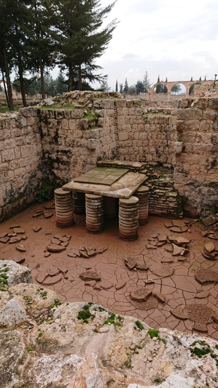 على بُعد أمتار قليلة من القصر، تقع الحمامات الأموية التي تتبع في تصميمها النمط التقليدي الشائع في الحمامات الرومانية. وهي تتألف من ثلاث غرف؛ غرفة الانتظار التي تغطّي أرضيتها لوحة جميلة من الفسيفساء وتعلوها قبّة مرفوعة على أربع دعائم، وتليها الغرف الفاترة والحارّة المخصّصة للتدليك والاستحمام.