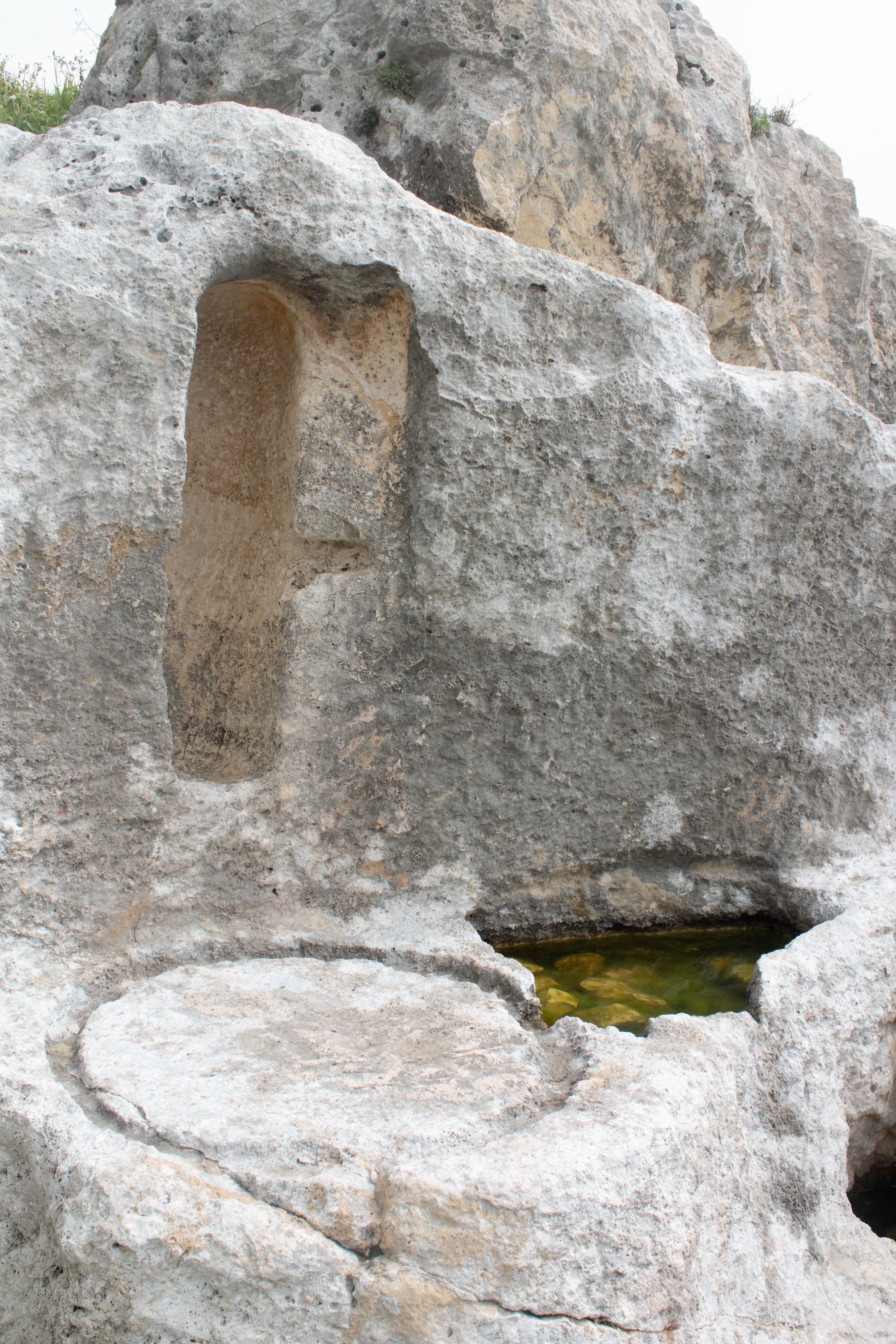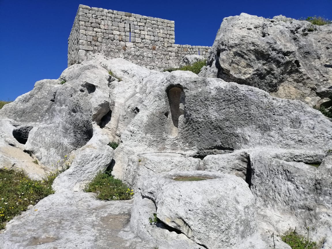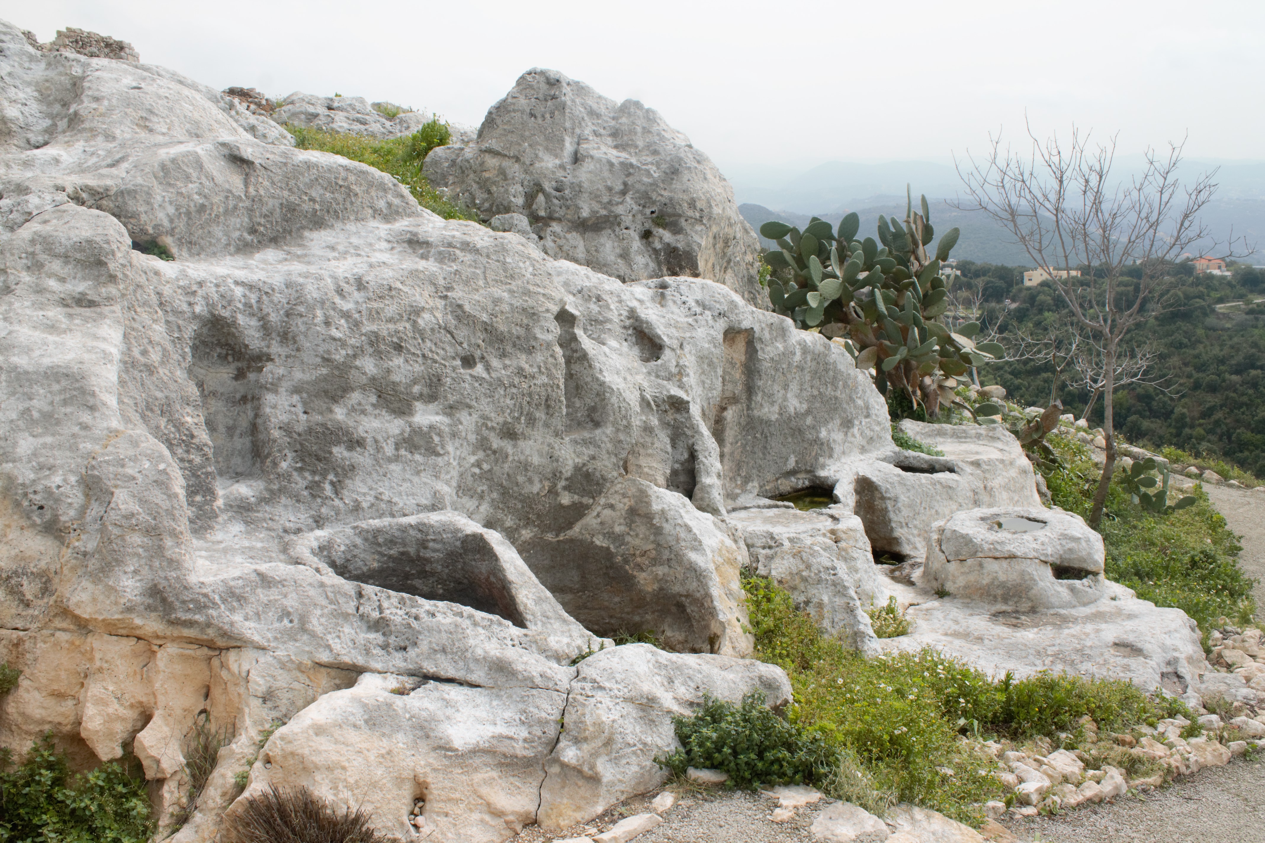 كذلك يحتوي الموقع على مغاور وتجاويف صخرية تعود الى العصر الروماني، كانت تُستخدَم مدافن وقبوراً.