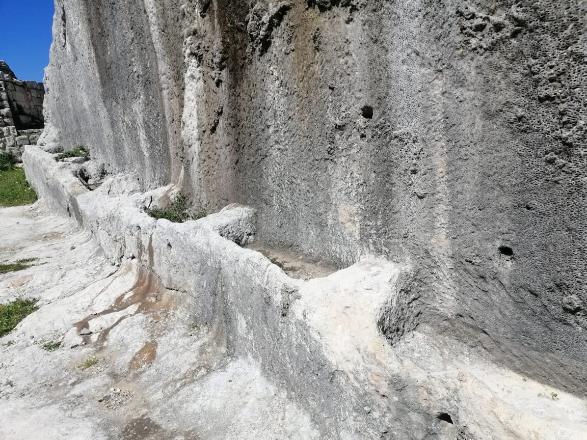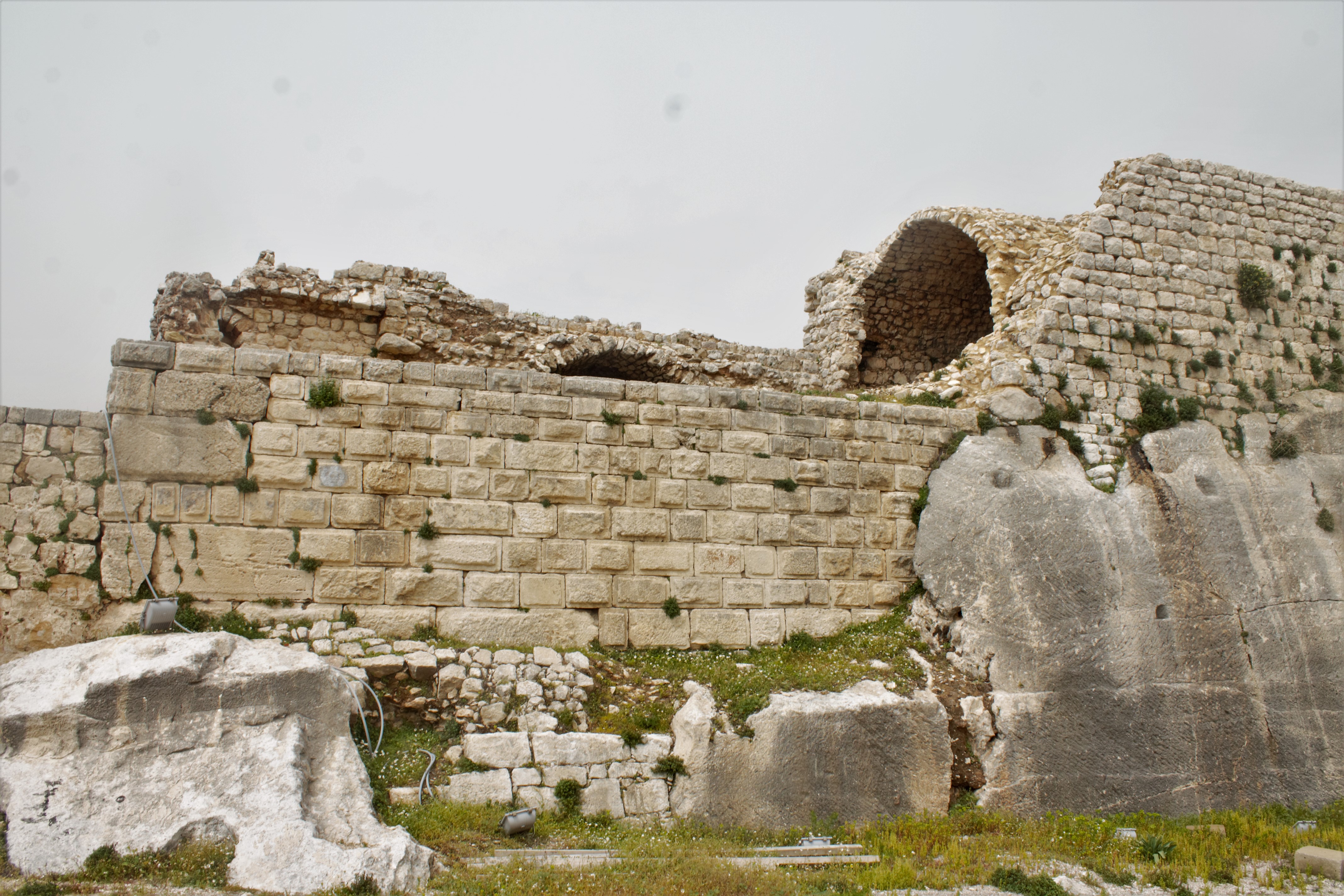 وعُثر في الموقع أيضاً على نقش إغريقي محفور في الصخر يزيّنه إطار. يشير النقش الى وفاة أوريليا زوجة أيراكليون عام 241، وإلى إشغال القلعة في الفترة الرومانية.