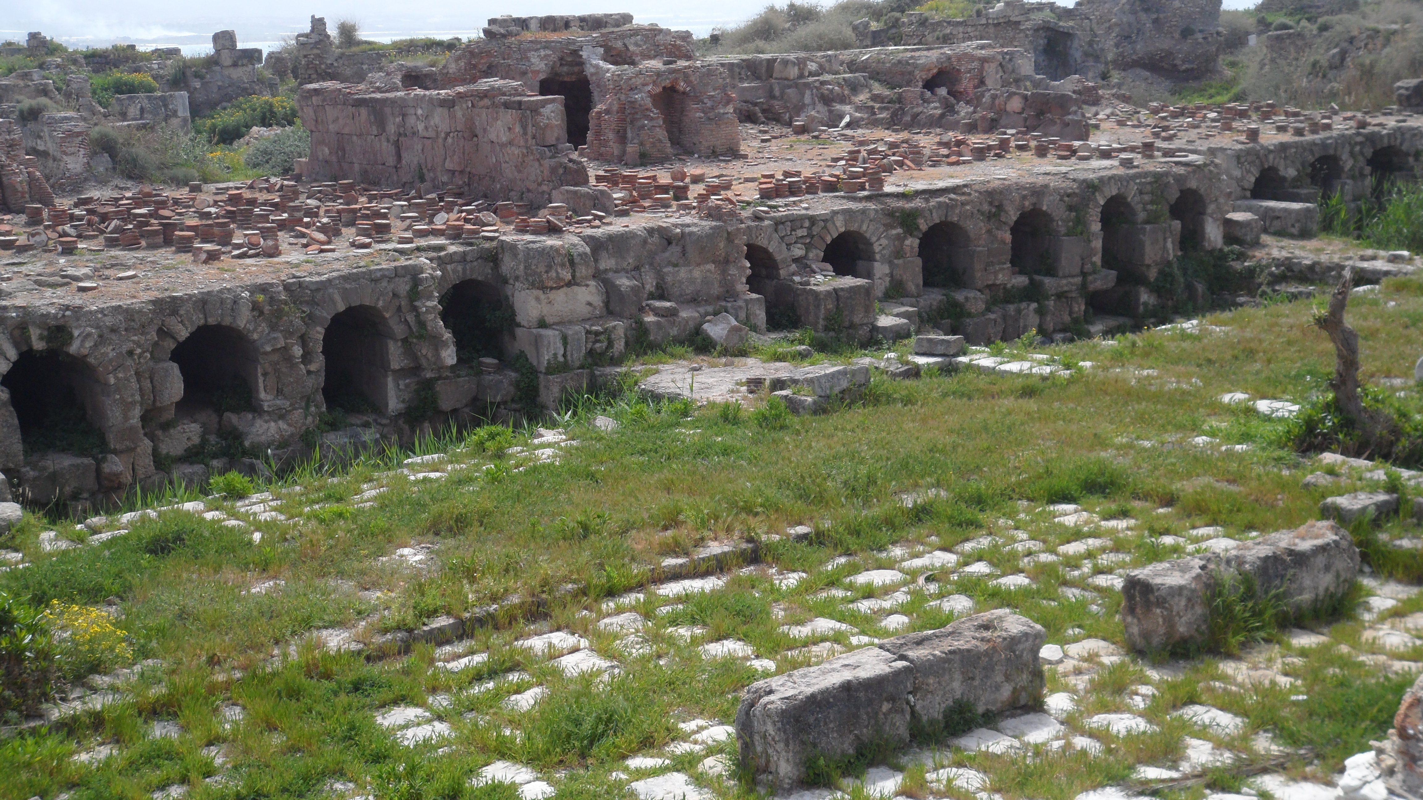 يضم الموقع، الذي كان يشكّل امتداداً للمدينة في أواخر القرن الثاني الميلادي، مبنيين رئيسيين عبارة عن قاعة ضخمة مخصصة للاجتماعات العامة، وحمّامات رائعة تصميمها مستوحى من حمامات تراجان في روما.