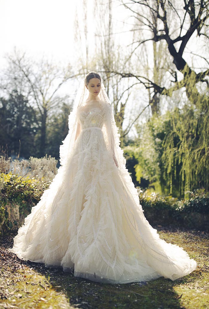 بالصور- مجموعة فساتين الزفاف لربيع وصيف 2023... إيلي صعب يُبدع في التقاط الإشراق الأثيري