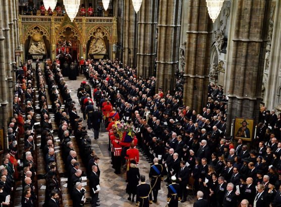 تطابقت أكسسوارات وتسريحتا الأميرة كيت والدوقة ميغان اليوم، أثناء حضورهما جنازة الملكة إليزابيث الثانية.