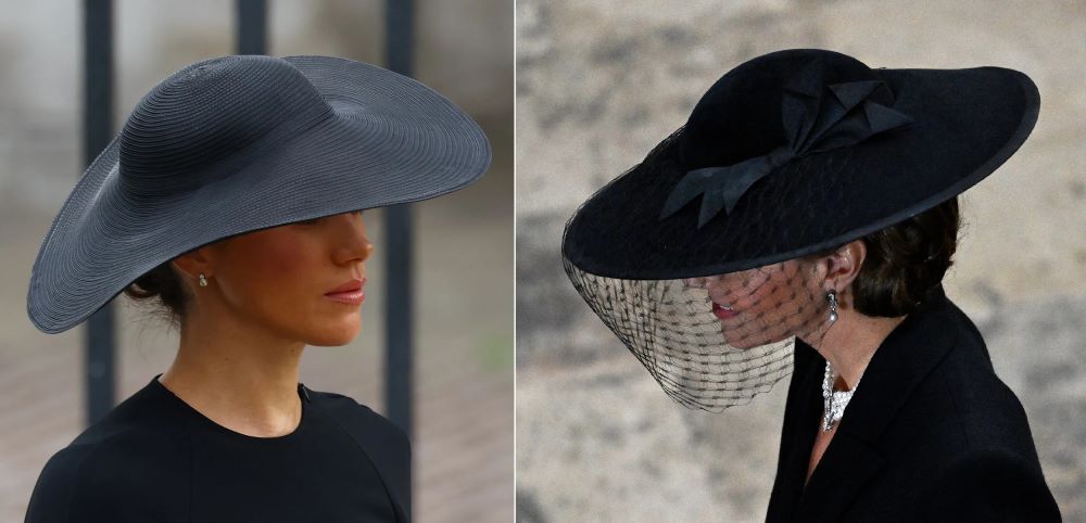 في جنازة الملكة إليزابيث: الأميرة كيت والدوقة ميغان اعتمرتا قبّعتين متطابقتين مع تسريحتين متشابهتين، أهي صدفة أم رسالة؟