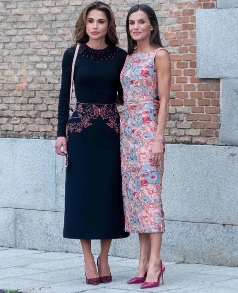 لم تستطع الملكة ليتيزيا احتواء فرحتها وهي تعانق وترحّب بالملكة رانيا ملكة الأردن في مدريد.