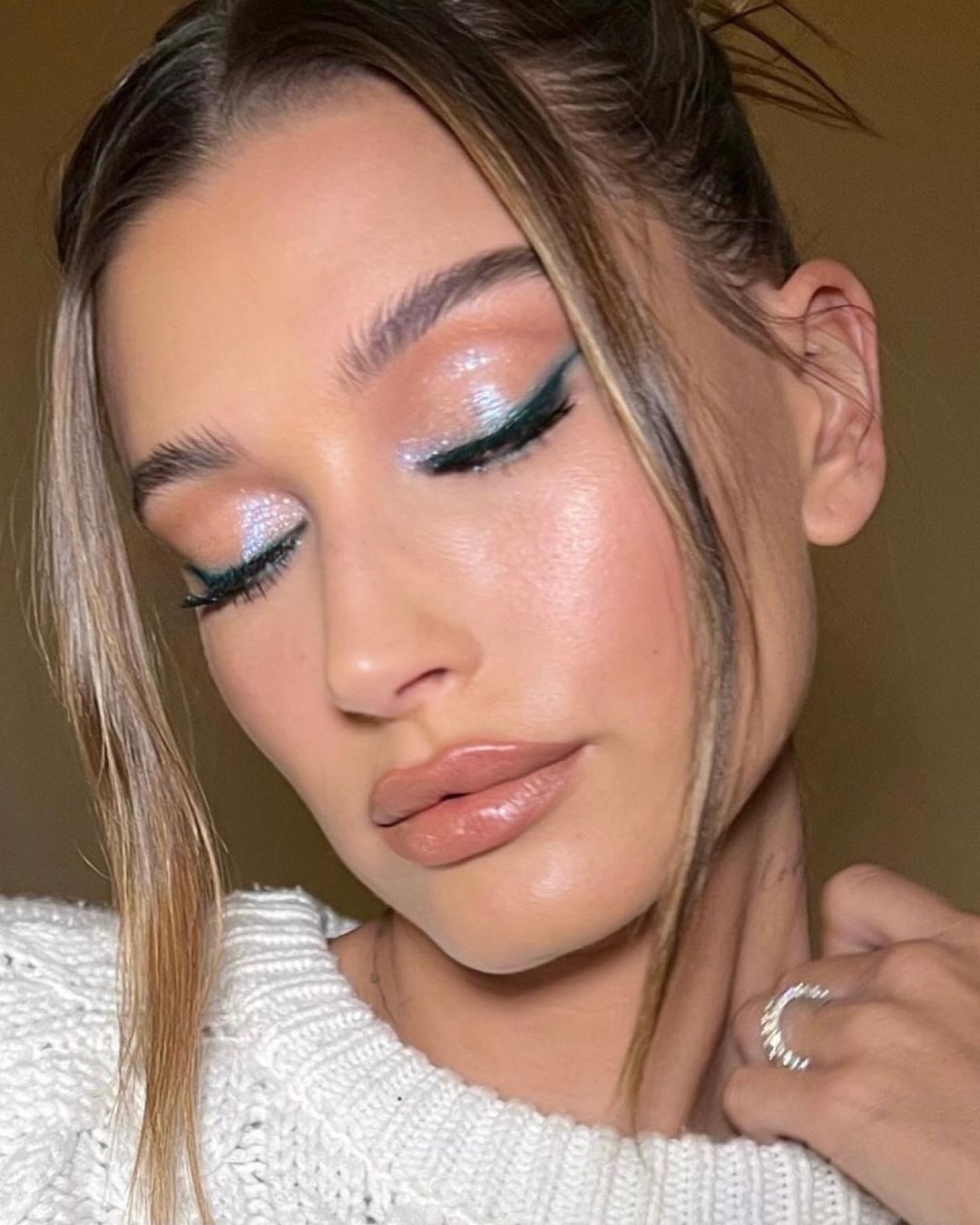 لقد مرّت بضعة أشهر منذ أن اجتاح هذا الاتجاه شبكات التواصل الاجتماعي. من Lucy Hale إلى Dua Lipa إلى Kendall Jenner، والآن Hailey Bieber ...لقد وقعن جميعًا في حبّ الآي لاينر الأخضر. شجرة الميلاد، النيون أو الباستيل أو النّعناع، هناك ألوان لجميع الأذواق. إنه يعزّز لون العين بسهولة، ويمنح هيئة احتفاليّة. لذلك، في الأعياد، لا تتردّدي في تجربة اللون على العينين، من خلال خطّ أنيق من الآيلآينر! يُمكنك أن تُكملي الاتجاه بأحجار الراين والترتر!