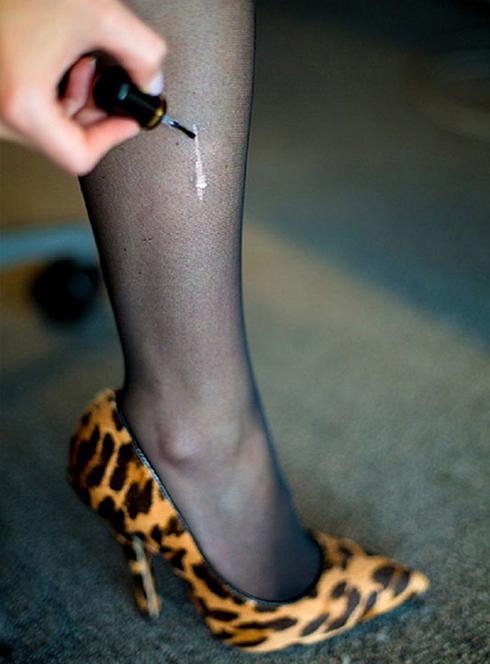 هل بدأت قطب جوارب النايلون في الإنفلات؟ استخدمي القليل من طلاء الأظافر لإيقاف تفلت النسيج. إذا لم يكن لديك طلاء أظافر، إفركي القطبة بالقليل من الصابون أو مثبت الشعر.