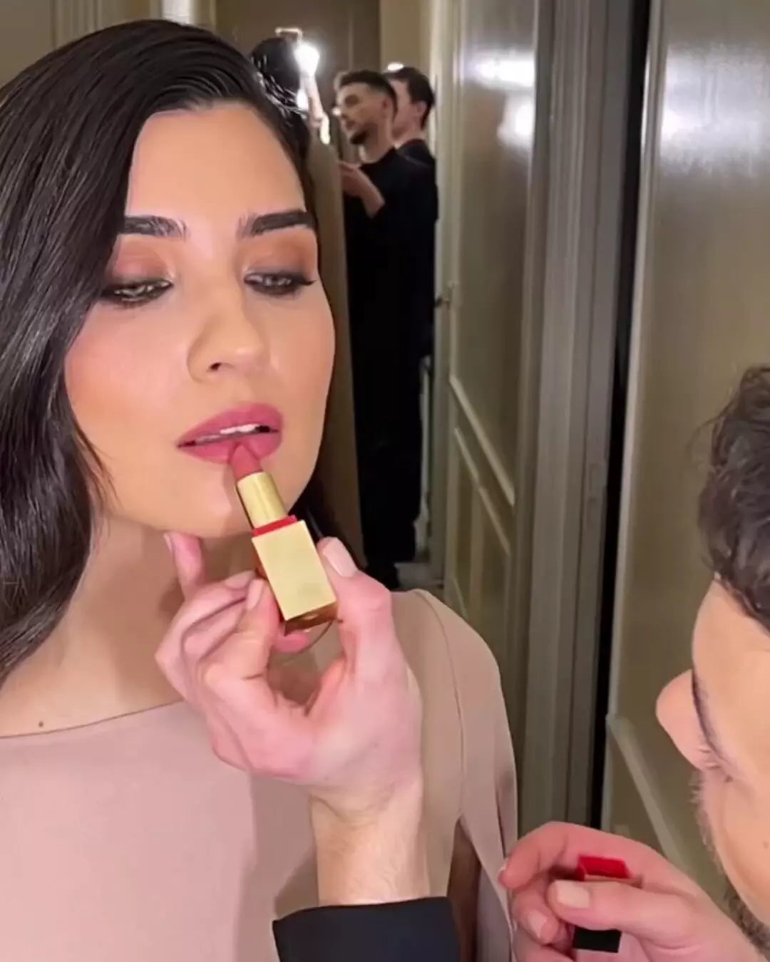 جماليًا، قامت دار Valentino beauty بتصميم المكياج، فتمّ التركيز على العينين بالكحل الأسود، واعتمد اللون الزهريّ القويّ كأحمر شفاه. تركت Tuba شعرها الأسود منسدلًا على كتفيها مع فرق على الجانب. في حسابها الخاص على منصّة "إنستغرام"، شكرت الممثلة بلغة إنكليزيّة دار فالنتينو في منشور: "إنّ من دواعي سروري دائمًا أن أكون جزءًا من سحر فالنتينو".