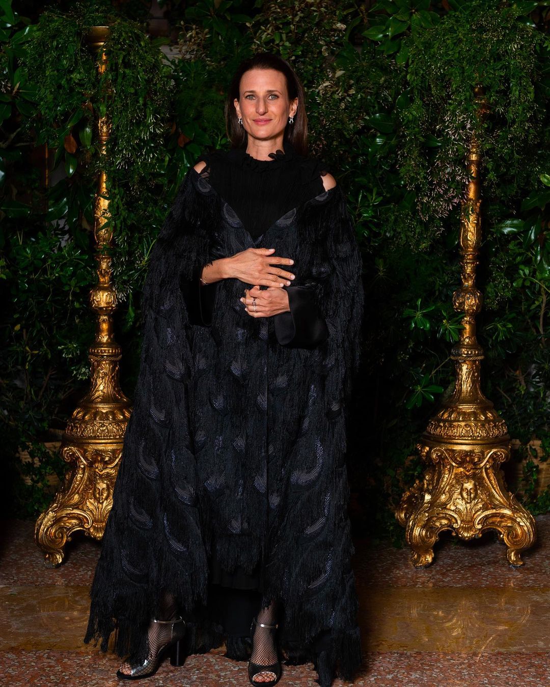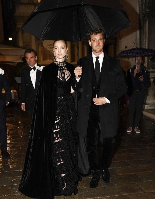 كلّ ومضات المصورين تسلّطت عليهما. ثنائيّ متناغم تمامًا! أظهر بيير كاسيراغي وبياتريس بوروميو أنّهما أكثر الأزواج بريقًا في عائلة موناكو. إلى جانب زوجها، الذي كان يرتدي بذلة سوداء أنيقة من ثلاث قطع بلون خشب الأبنوس، تألّقت كنّة كارولين دو موناكو بأناقة بفستان أسود شفّاف مع مشلح أسود مربوط حول العنق من توقيع ديور. اختيار مثير وأنيق يناسب سفيرة Dior، وإطلالة مثاليّة لقضاء ليلة ممطرة في البندقية. أمّا تصفيفة شعرها، فقد امتازت بسحب الشابّة شعرها إلى الخلف، بالإضافة إلى اختيارها أقراطا ذهبيّة كبيرة مرصّعة بأحجار الزمرد لإضفاء سحرٍ على جمالها الطبيعيّ.