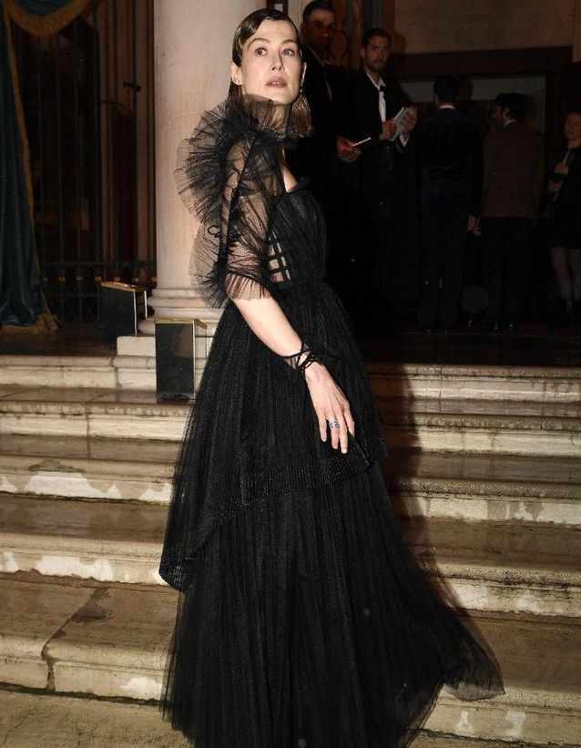 Rosamund Pike-Dior dress and Dior jewelry