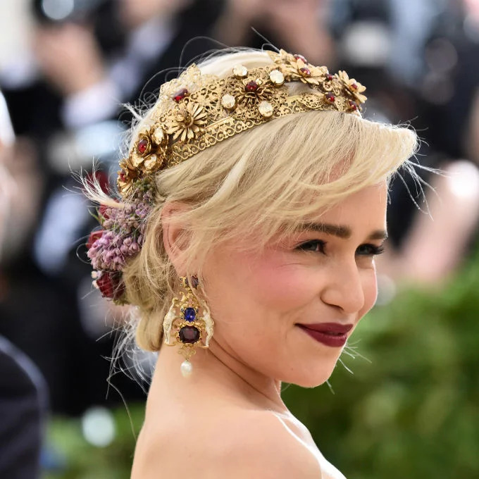 إذا كنت تريدين جذب الأنظار، فعليك بالأكسسوارات اللامعة؛ فقليل من اللمعان يزيدك فتنة، كعصابة رأس على شكل تاج، أو أكسسوارات كبيرة الحجم مثل Emilia Clarke أو سلمى حايك أو Kaitlyn Dever...