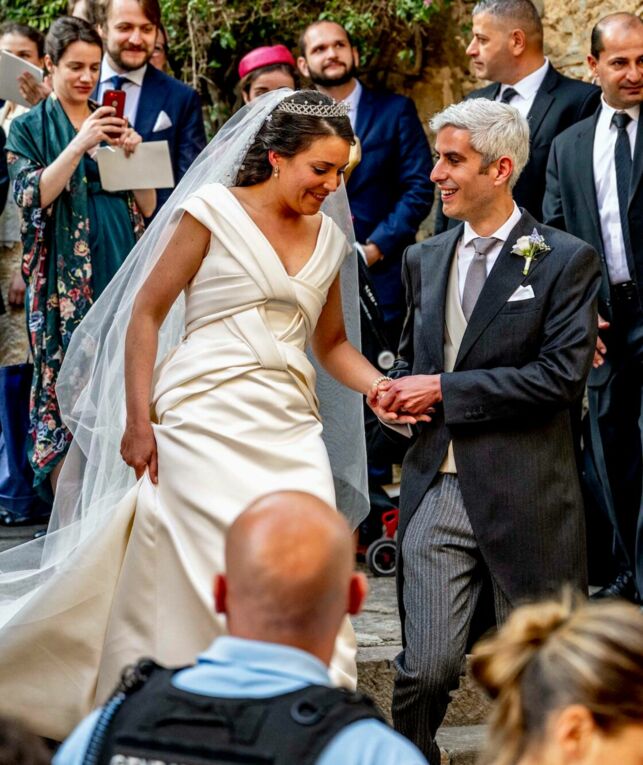 بعد بضعة أيام، في حفل الزفاف الدينيّ، الذي تمّ تنظيمه في Var، ارتدت فستان زفاف مع عقد من توقيع إيلي صعب. زيّ مُزوّد بطرحة طويلة من التول المنقّط، مع تاج من دار شوميه للمجوهرات، الذي يخصّ جدّتها الدوقة الكبرى جوزفين شارلوت.