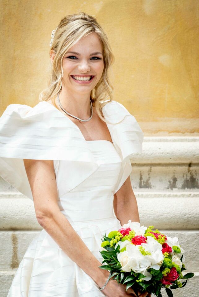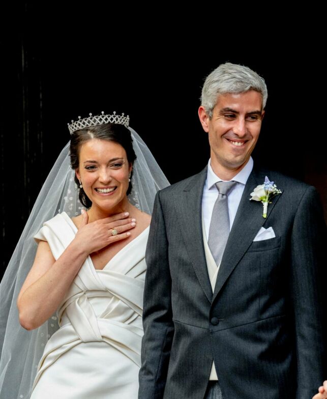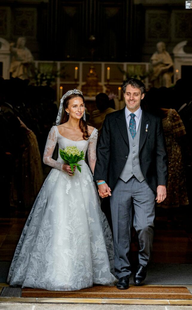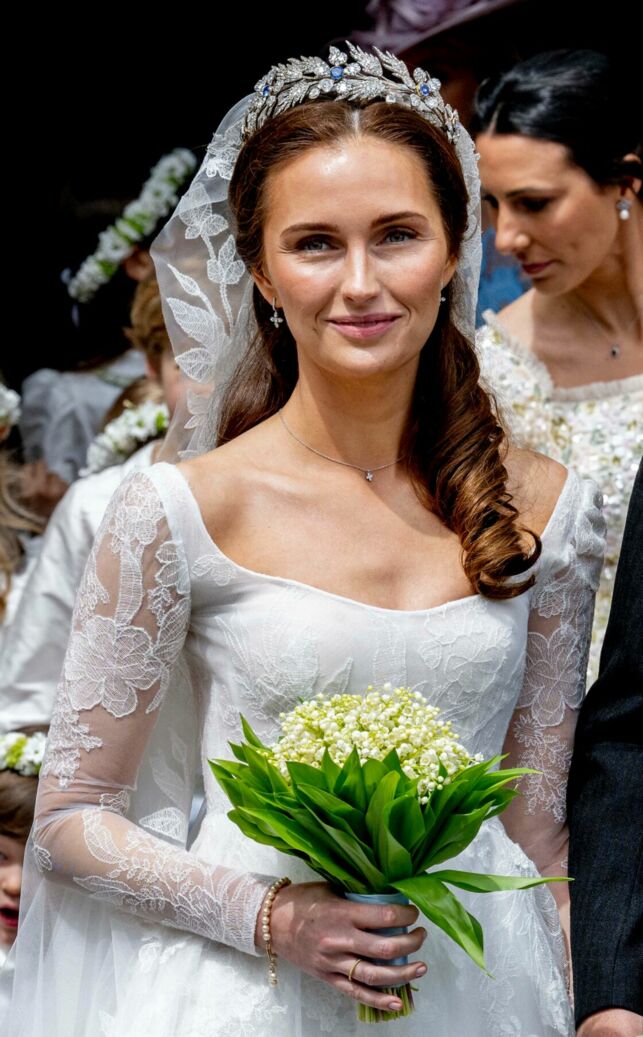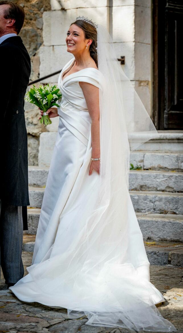 فستان الزفاف الأبيض من توقيع إيلي صعب لأميرة لوكسمبورغ ألكسندرا في 29 نيسان 2023.
