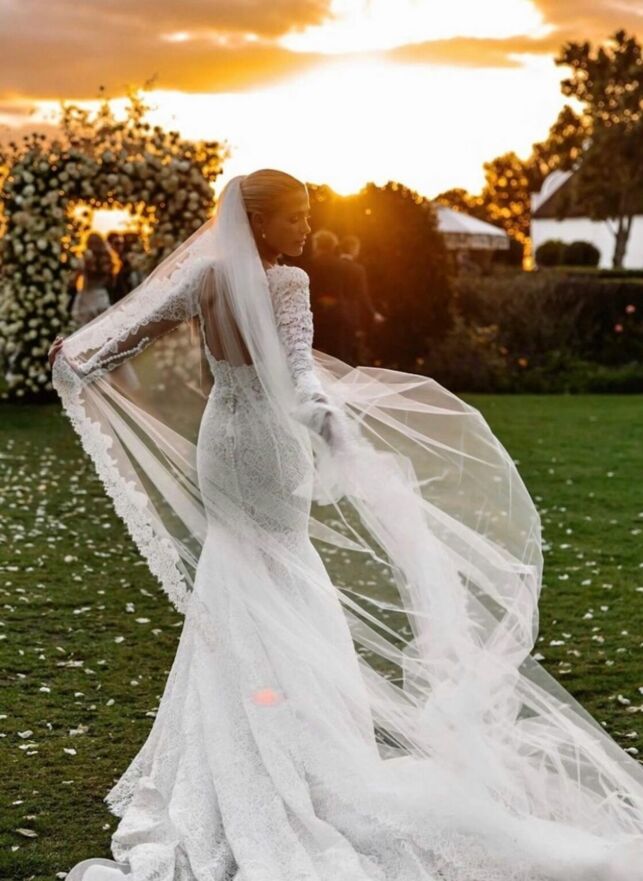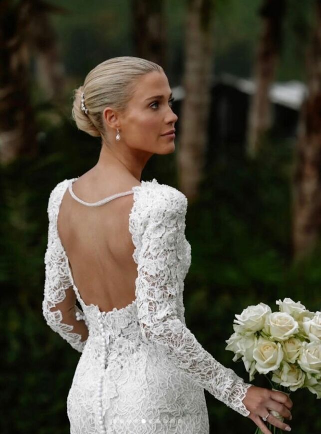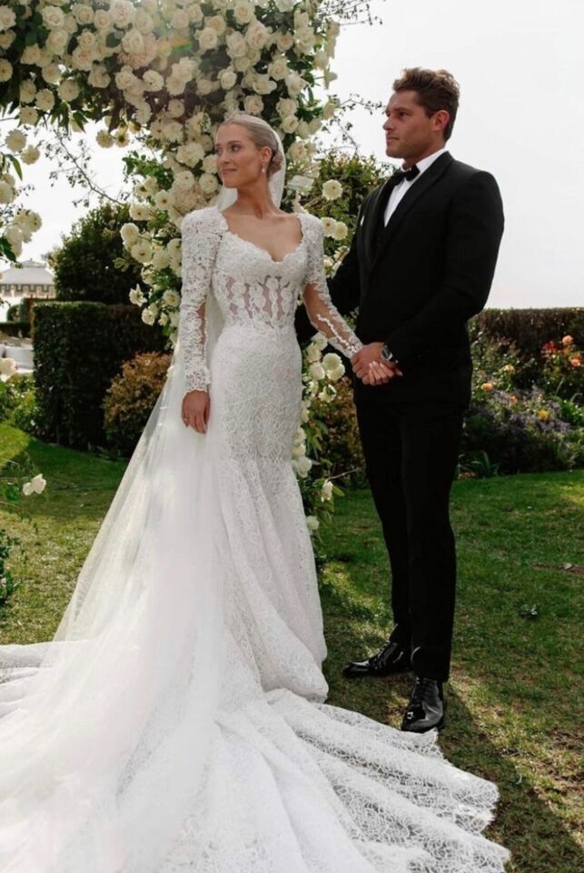 فستان الزفاف الطويل الدانتيل بتوقيع ريم عكرا لصوفي ألكسندرا إيفكينك، 20 أيّار 2023.