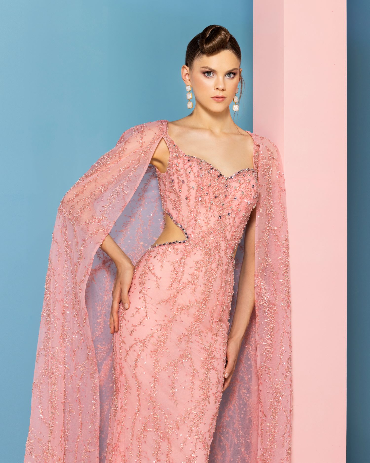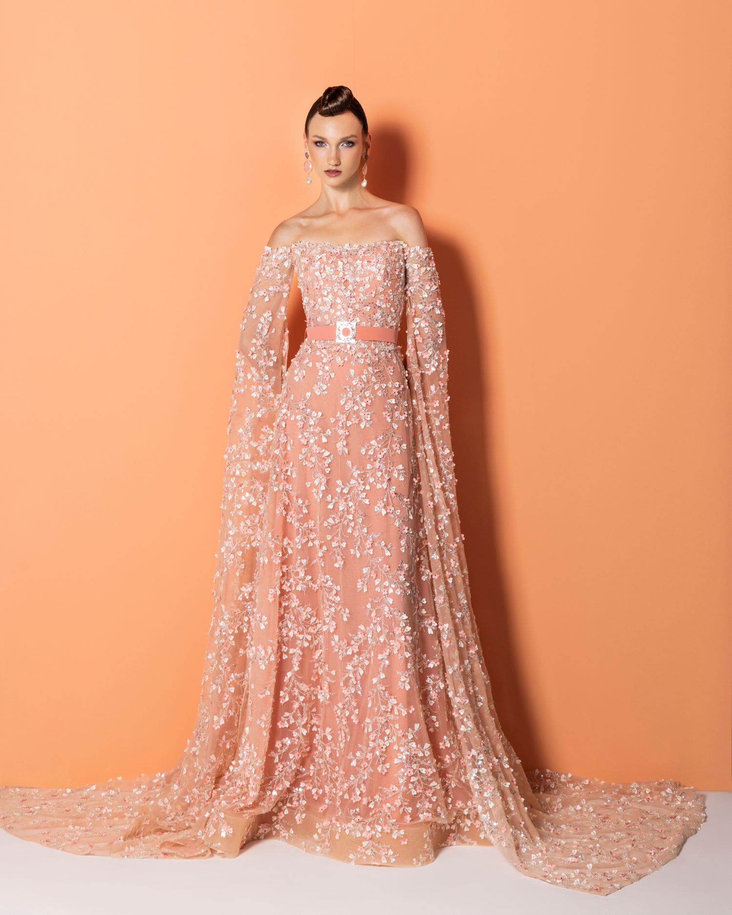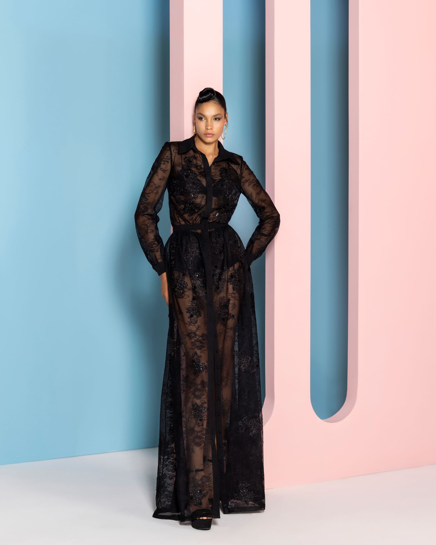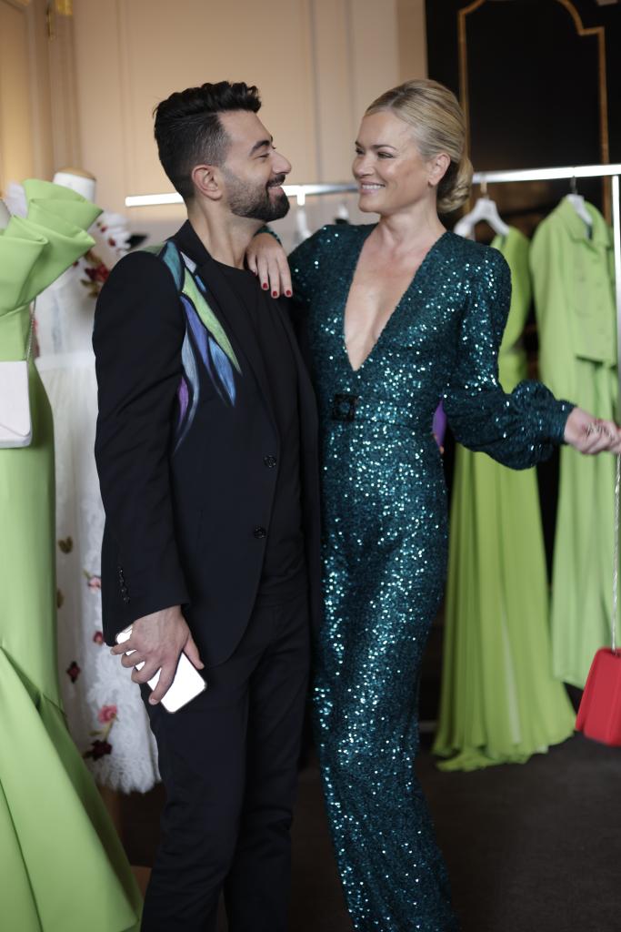 عارضة الأزياء الأميركيّة لايكن رومن ترتدي فستان من مجموعة نجا سعادة الجديدة