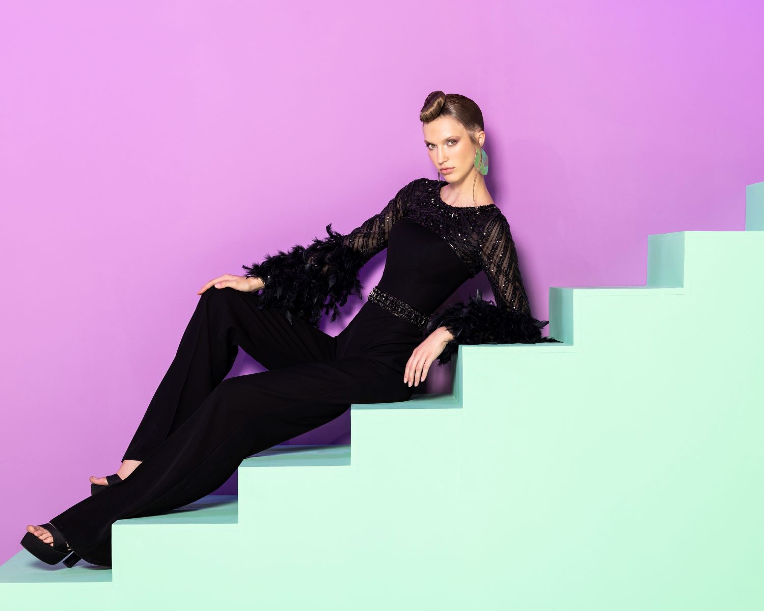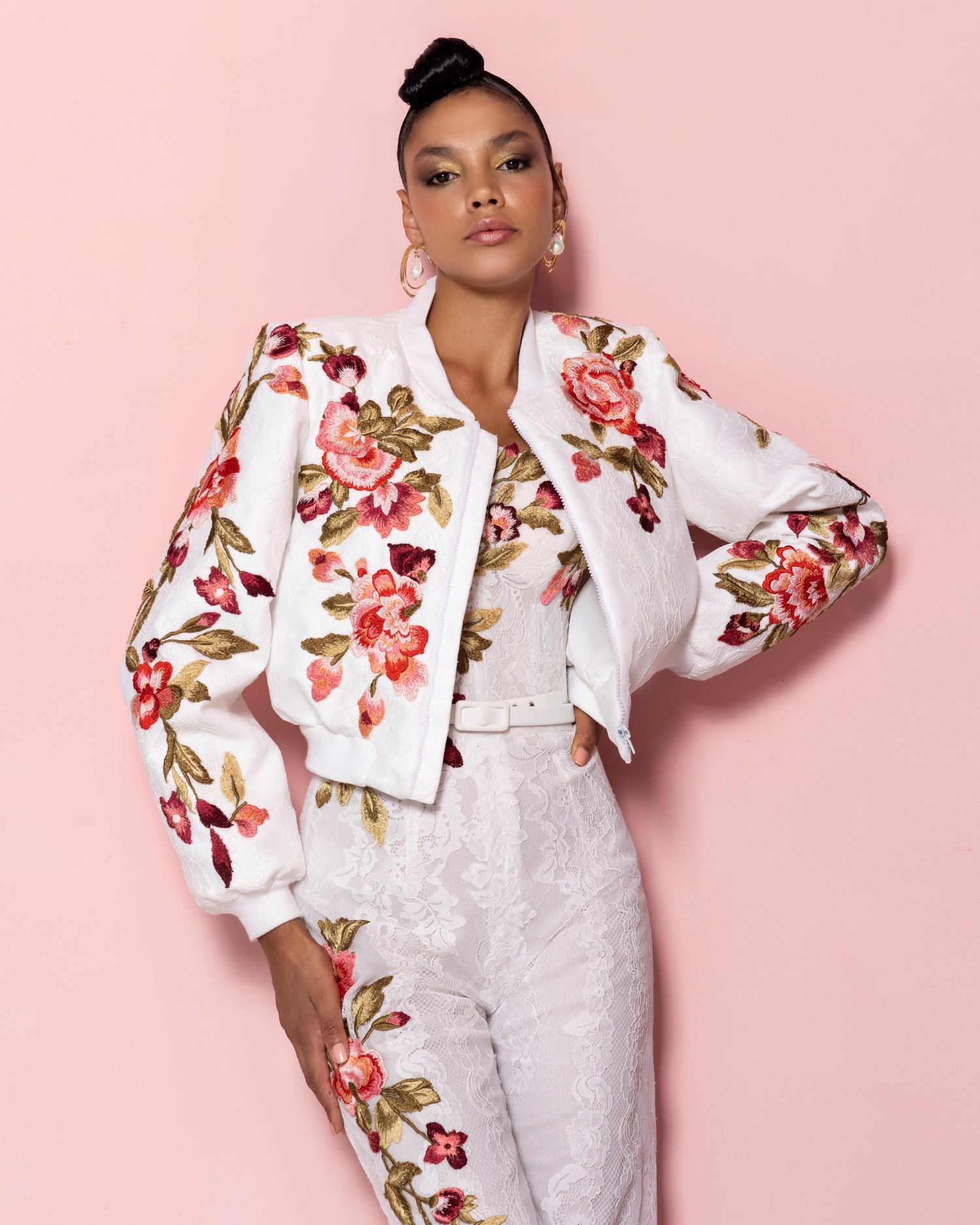 عارضة الأزياء الفرنسية السابقة ومقدمة البرامج شيريل سيكاتو في جمبسوت من الترتر من توقيع نجا سعادة