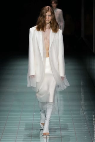 إن المظهر ذا الأكتاف الرجولية العريضة موجود في كل مكان على منصّات العروض وفي الشوارع. بشكل رئيسي من خلال السترات الكبيرة الحجم التي تذكرنا بطابع الثمانينيات، ولكن أيضًا في المعاطف أو الملابس الضيقة، وكذلك في السترات الشبيهة بأكتاف لاعبي كرة القدم الأميركيّة. من المفارقة أنّ الأكتاف الواسعة، والتي غالبًا ما تكون مربعة (أو مدببة لدى Rick Owens)، تجعل من الممكن تأنيث الإطلالة من خلال شد الخصر. بشكل عام، تستحوذ الأحجام على الملابس من خلال تجارب مختلفة (Sacai، Comme Des Garçons، Duran Lantink) مع فكرة التركيز على المظهر.
