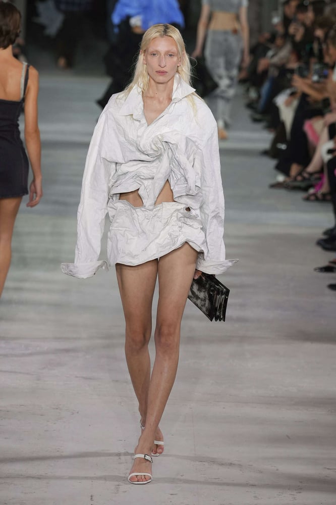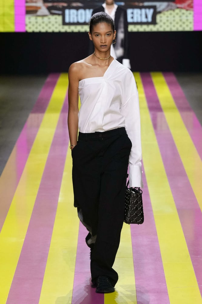 عدم التناسق هو الإملاء الجديد في الموضة، سواء في الفساتين أو التنانير أو القمصان. على وجه الخصوص، الكتف العاري في جميع المجموعات. في الفساتين ذات الثنيات (Atlein، AZ Factory، Blumarine، Bottega Veneta، Burburry، Coperni)، ولكن أيضًا في القمصان (Balmain، Dior) أو سترات التوكسيدو (Dolce & Gabbana). دون أن ننسى بالطبع التوبات الصغيرة. في بعض الأحيان يتم تحقيق عدم التناسق هذا عن طريق حرمان الثوب من الأكمام.
