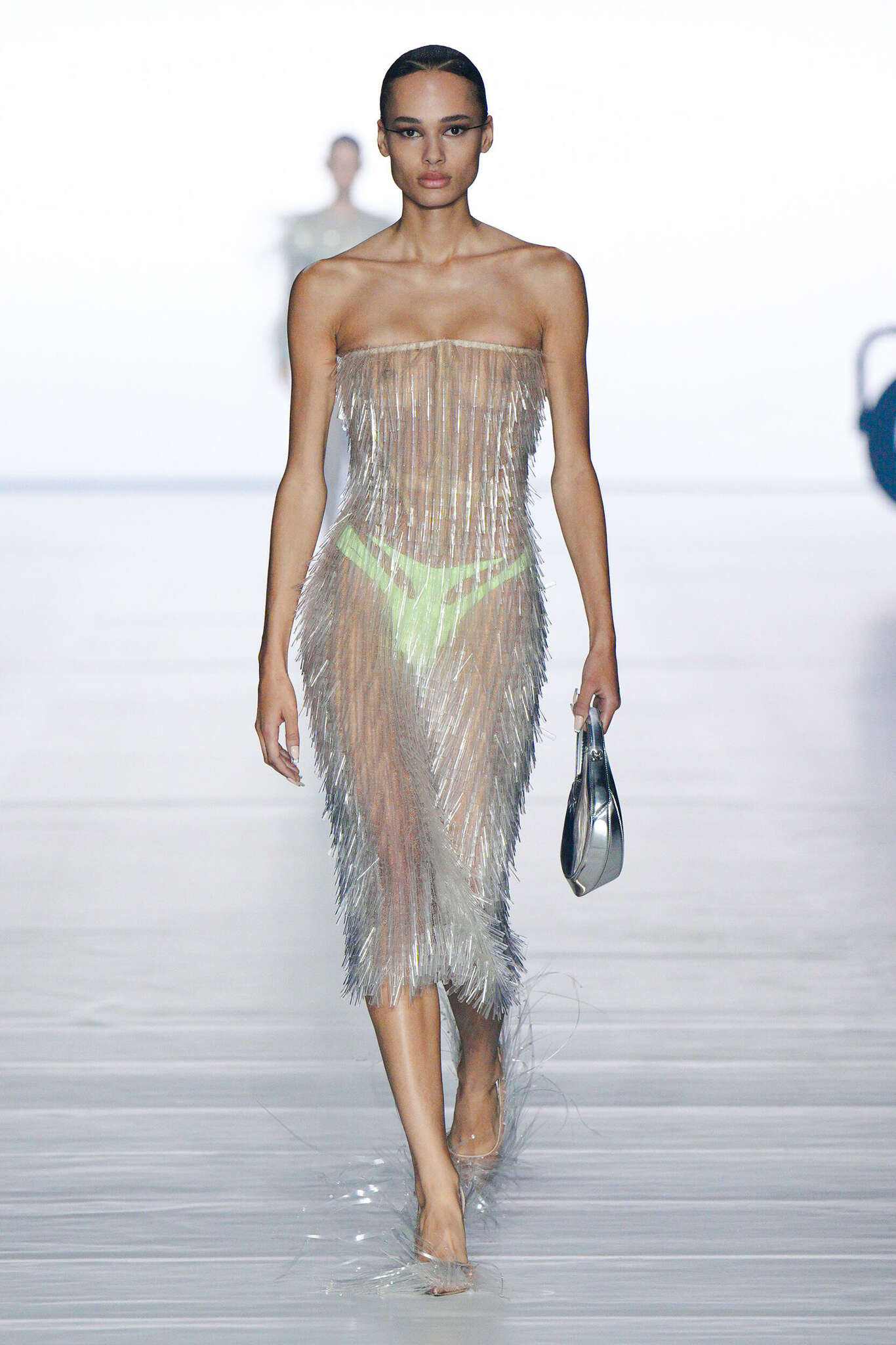 البلاستيك، الذي اعتقدنا أنه محظور في المجموعات، يعود من جديد على منصّات العرض. تقوم المصمّمة السويديّة هوداكوفا، وهي من محبّي إعادة التدوير، بتغليف الجسم بالبلاستيك. يستفيد كل من Anrealage وPierre Cardin وDolce & Gabbana من الملابس والمعاطف الواقية من المطر المصنوعة من البلاستك الشفاف المطرّز بالضفائر، بينما نحت موغلر الكورسيهات المثيرة للنظر. وجرّب آخرون استخدام مادة اللاتكس، مثل Avellano، أو باستخدام مواد لامعة، مثل النايلون كما لدى Ujoh.