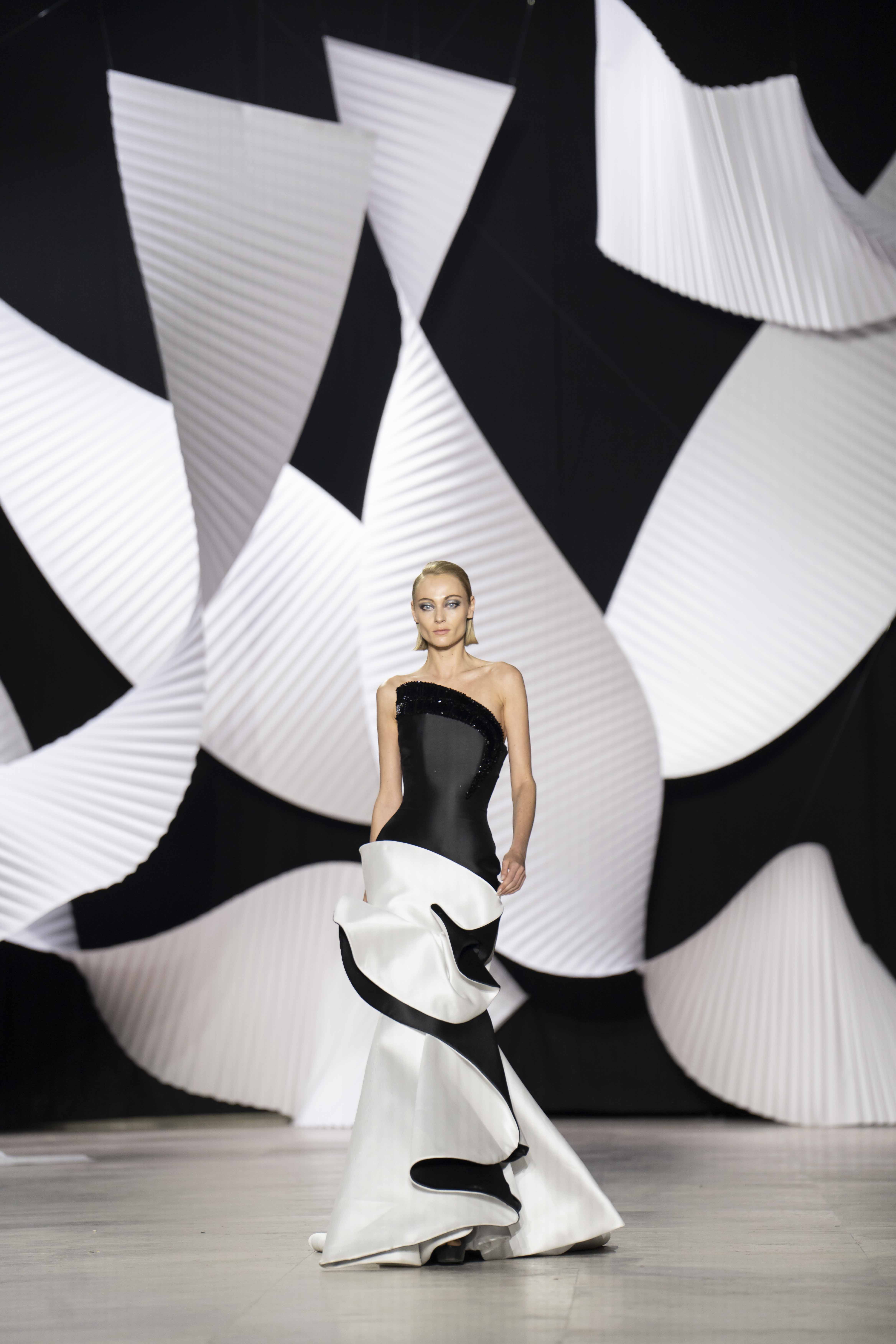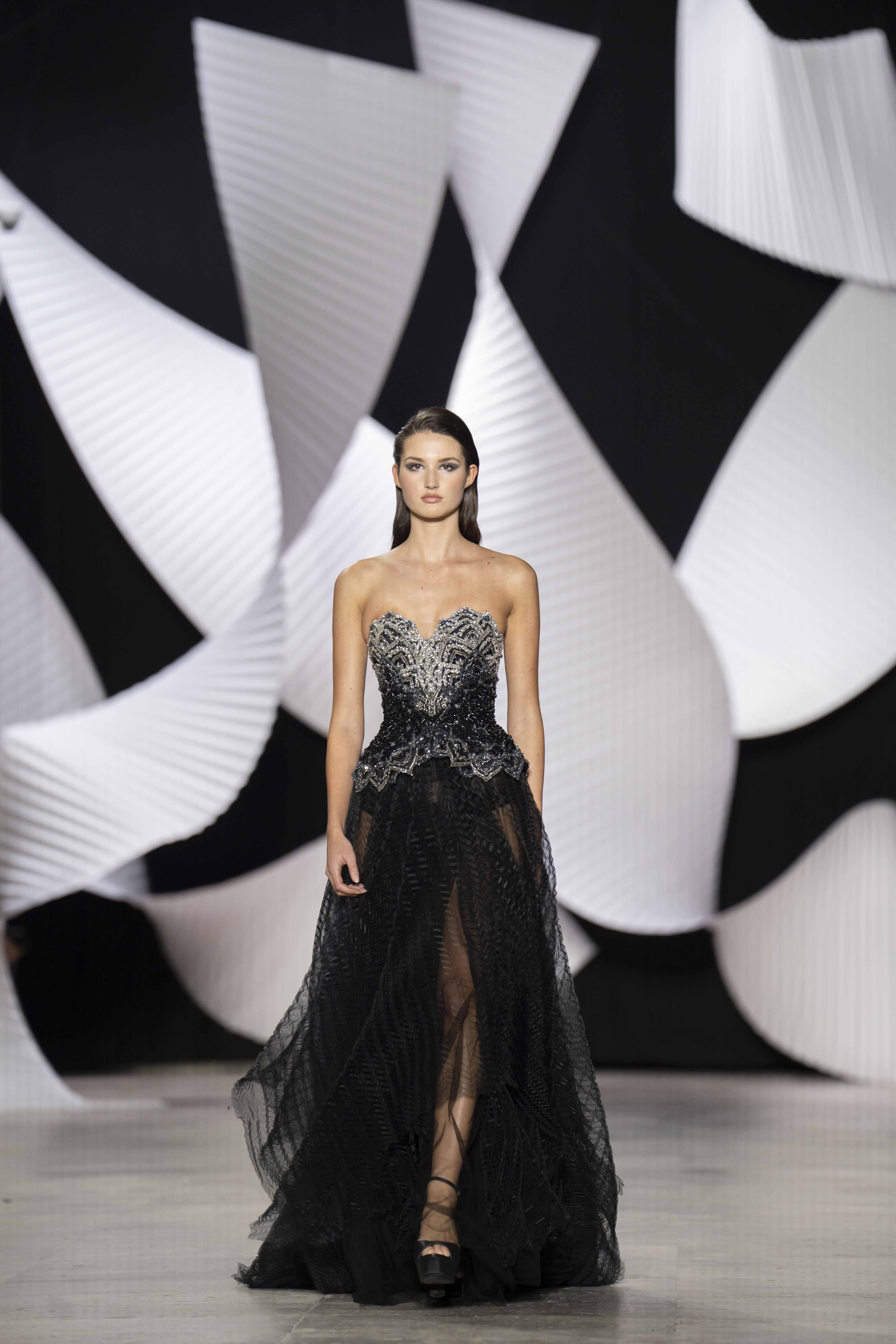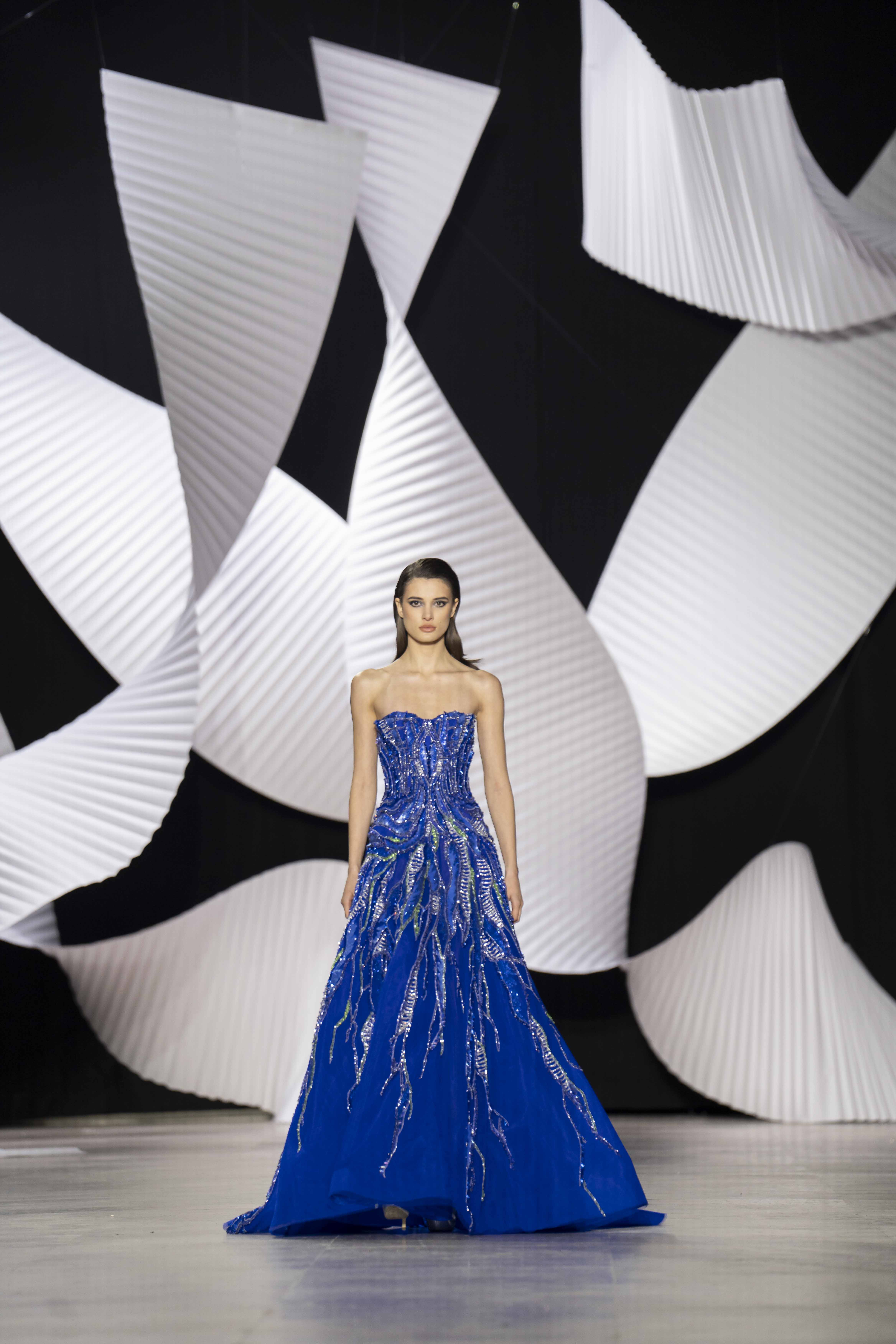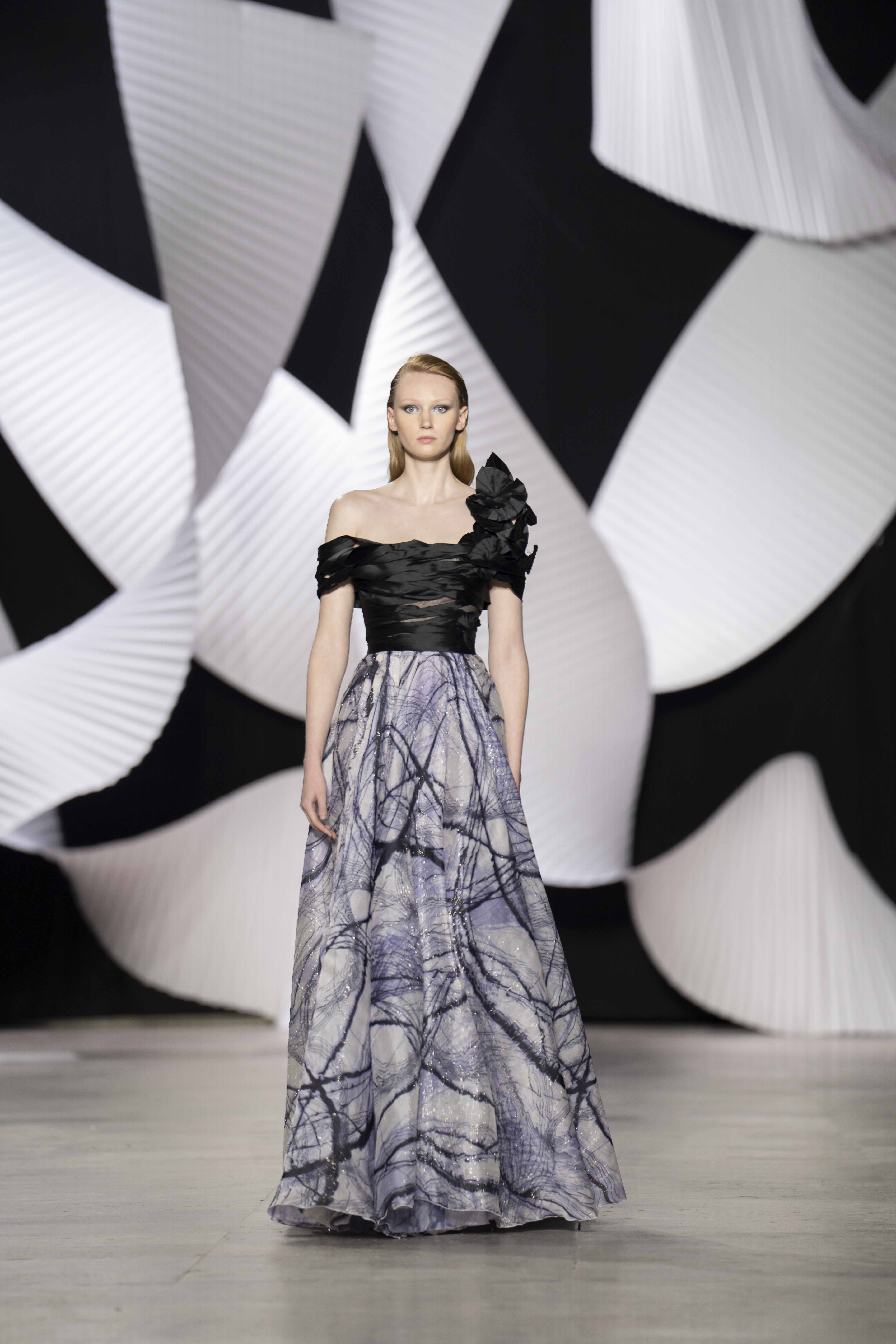 في قصر طوكيو Palais de Tokyo في باريس، كشفت المجموعة عن قامات شاعرية رائعة ممزوجة بتقنيّة عصريّة... ثمة خبرة مبتكرة ثلاثيّة الأبعاد تجمع بين أعمال النسيج المثيرة للاهتمام والفساتين المناسبة للصورة الظليّة، إلى جانب الأحجام الدراميّة، واللآلئ المتراقصة، التي تتحرك بفضل الأضواء الكاشفة، والمشالح المسرحية، والفتحات الشفّافة الرقيقة ولكن الجريئة، والشقوق العالية لتي تصل حتى الفخذ، والكورسيهات الجذابة التي تعانق الخصر، والمواد السائلة التي تغزو المنصّة، والجوانب غير المتماثلة التي تتناقض مع القطعة نفسها وتعانقها برقّة.