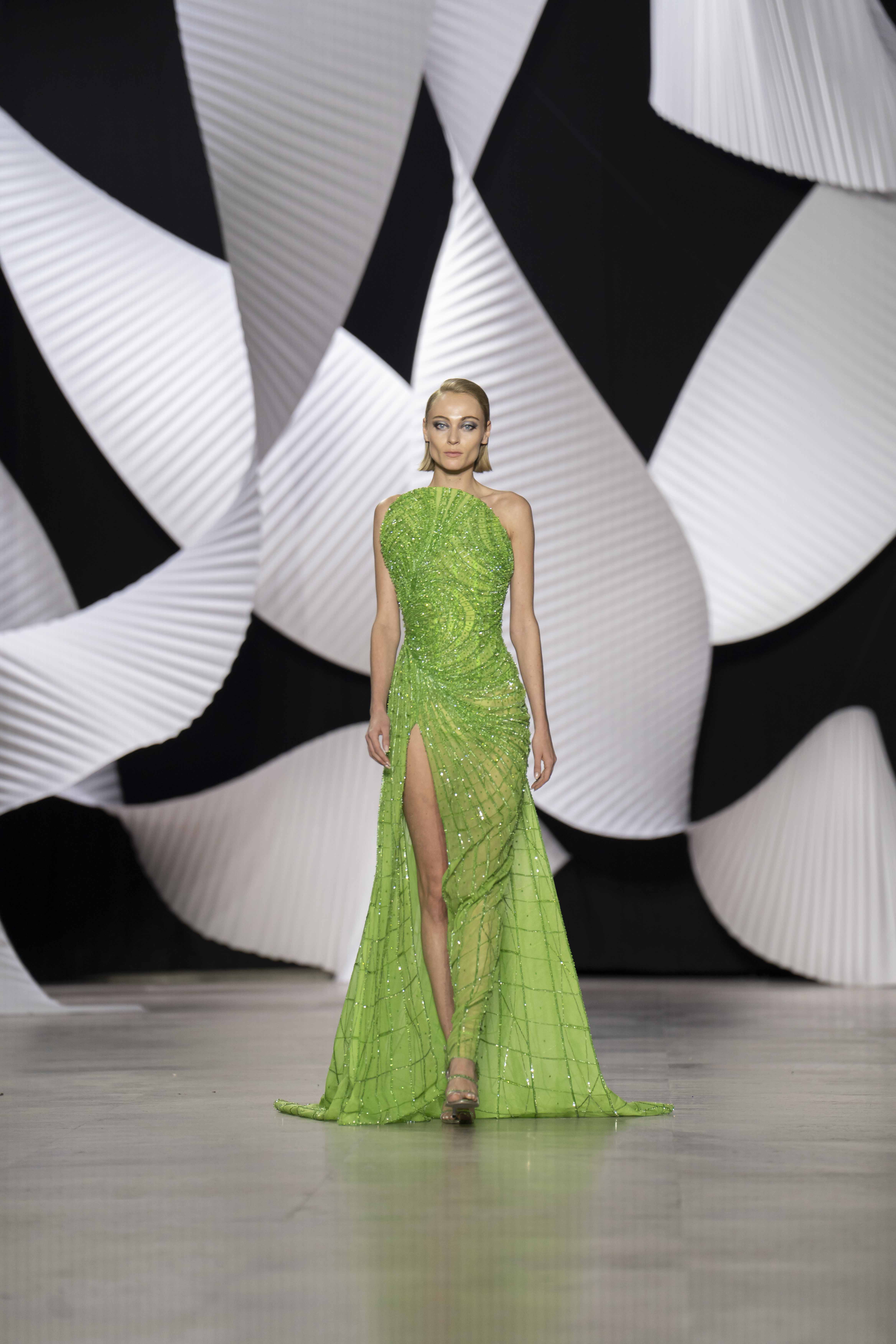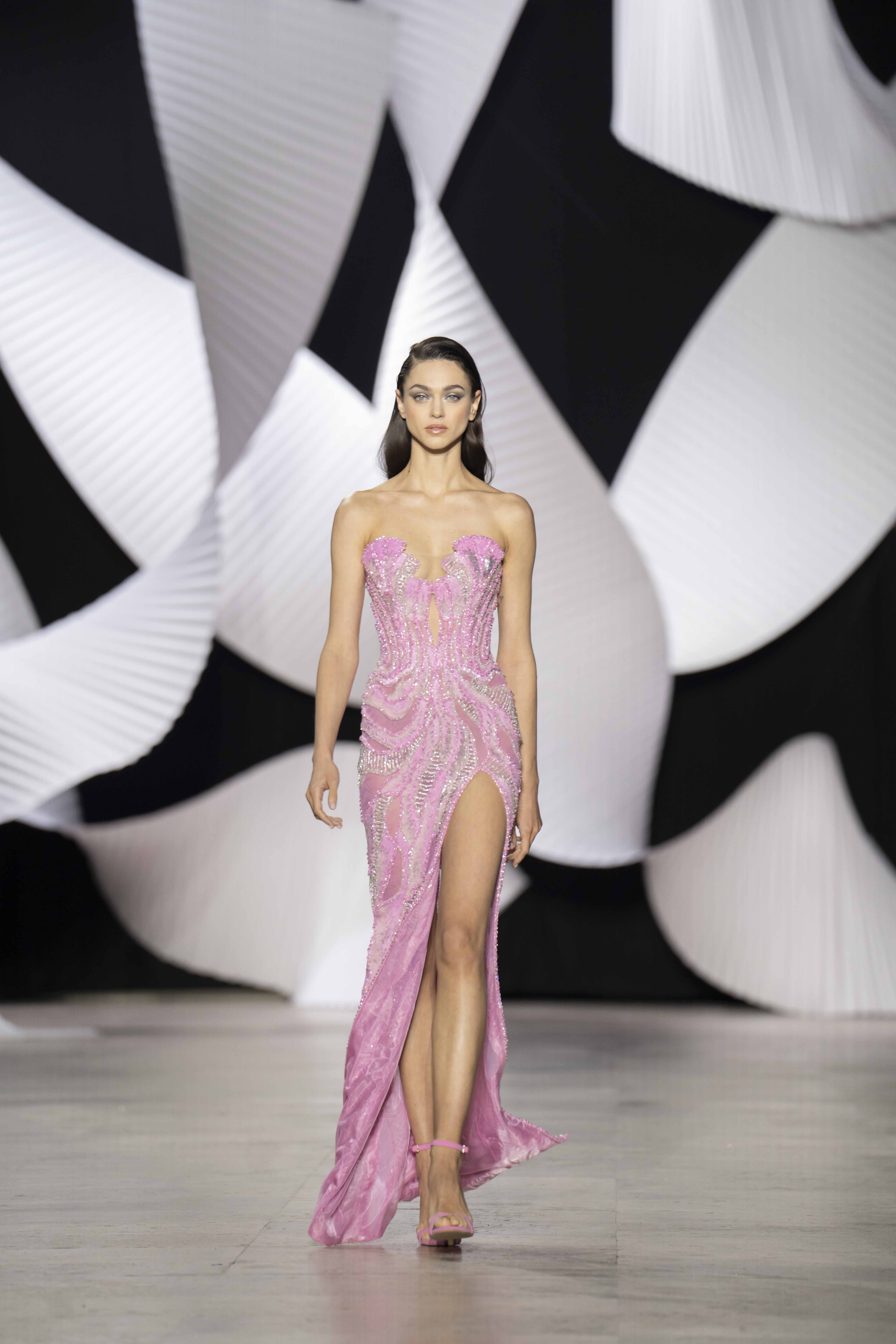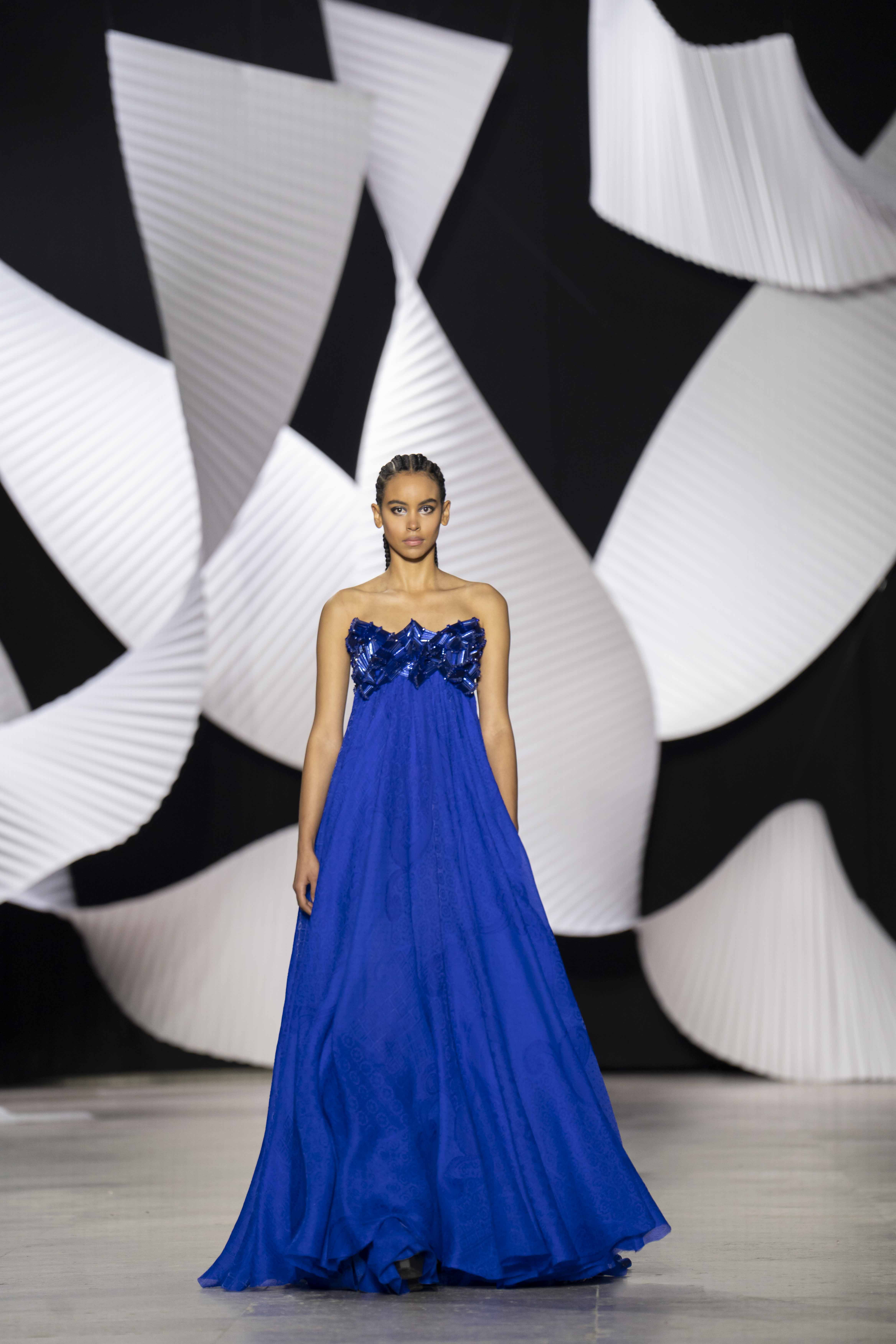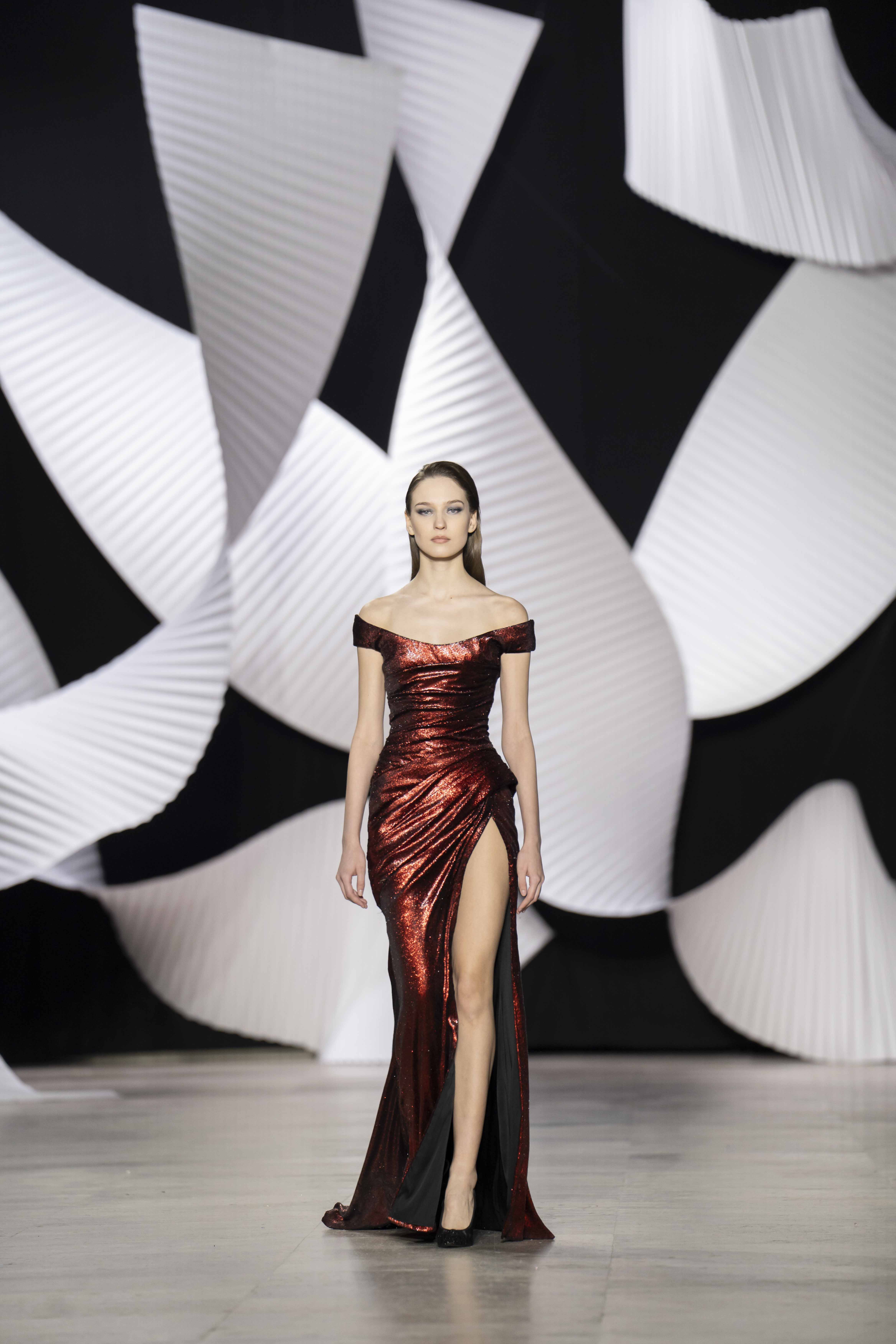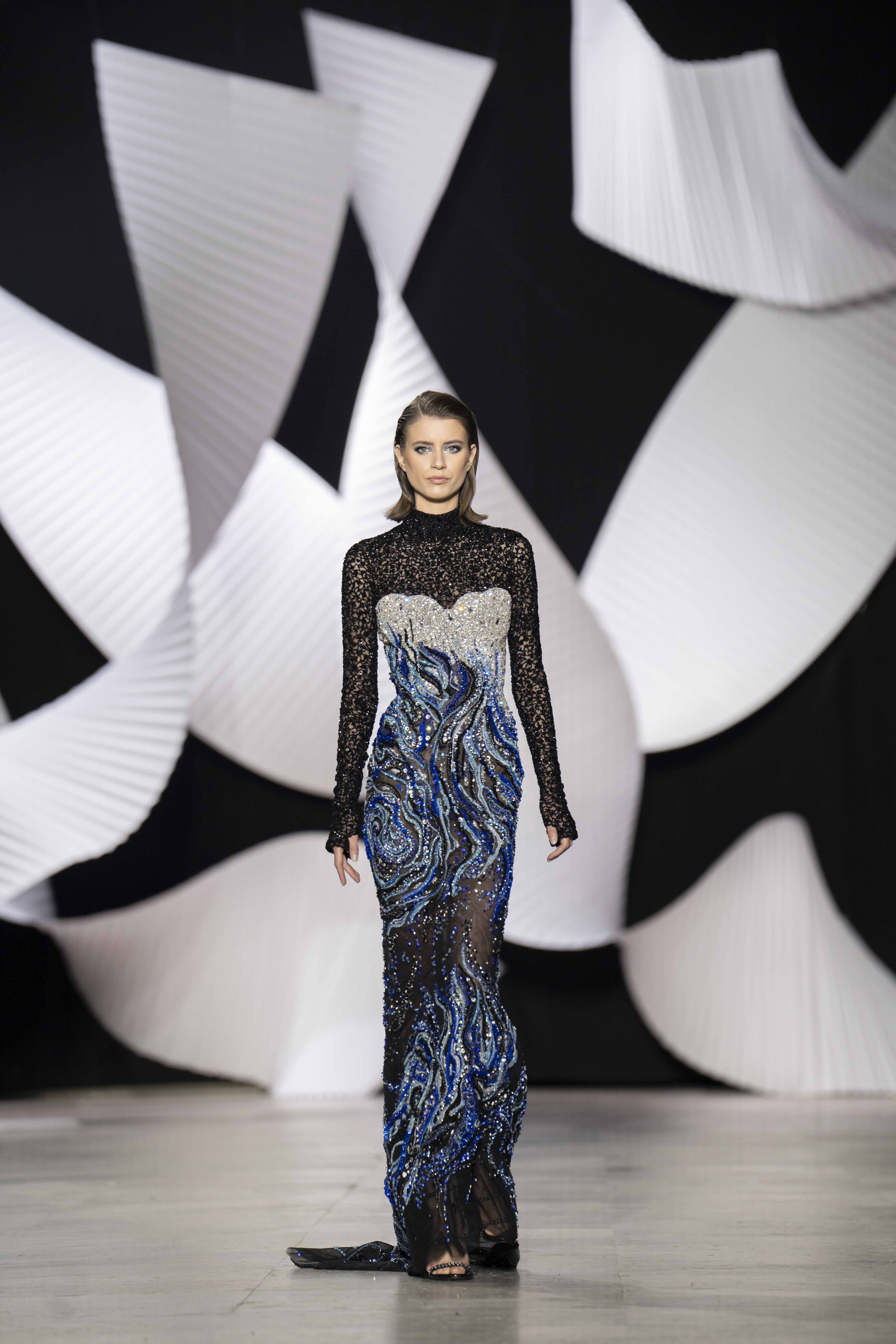 في قصر طوكيو Palais de Tokyo في باريس، كشفت المجموعة عن قامات شاعرية رائعة ممزوجة بتقنيّة عصريّة... ثمة خبرة مبتكرة ثلاثيّة الأبعاد تجمع بين أعمال النسيج المثيرة للاهتمام والفساتين المناسبة للصورة الظليّة، إلى جانب الأحجام الدراميّة، واللآلئ المتراقصة، التي تتحرك بفضل الأضواء الكاشفة، والمشالح المسرحية، والفتحات الشفّافة الرقيقة ولكن الجريئة، والشقوق العالية لتي تصل حتى الفخذ، والكورسيهات الجذابة التي تعانق الخصر، والمواد السائلة التي تغزو المنصّة، والجوانب غير المتماثلة التي تتناقض مع القطعة نفسها وتعانقها برقّة.