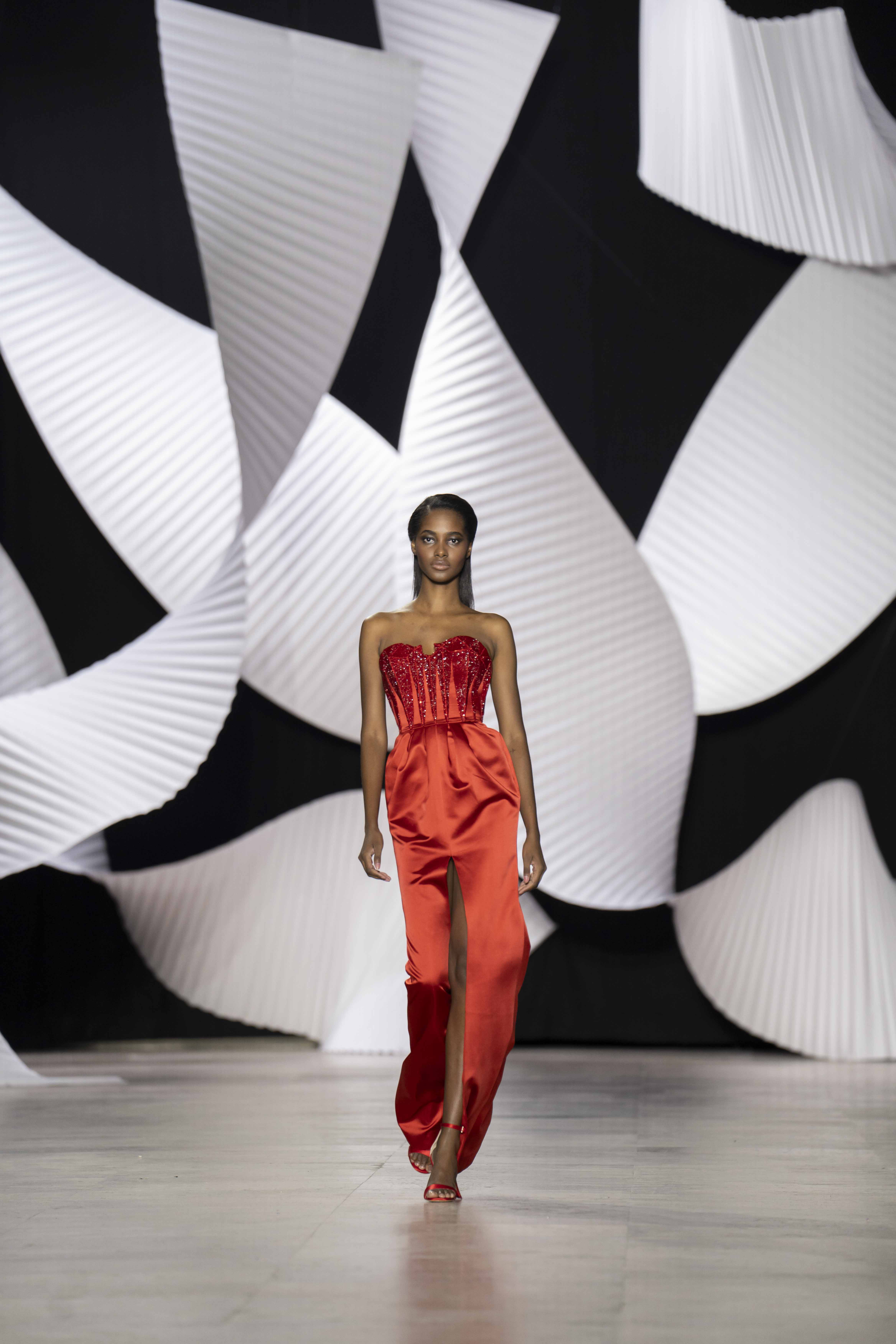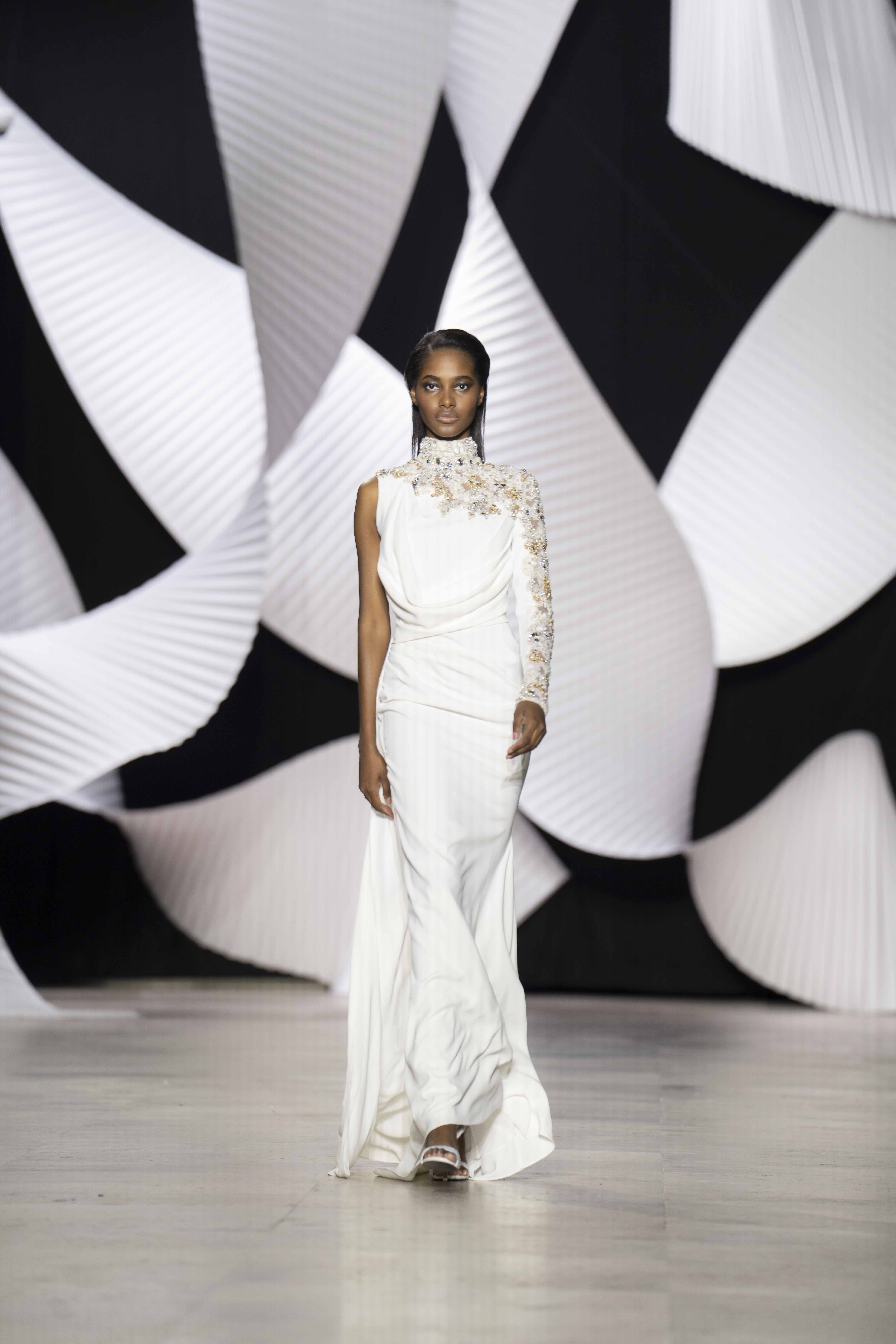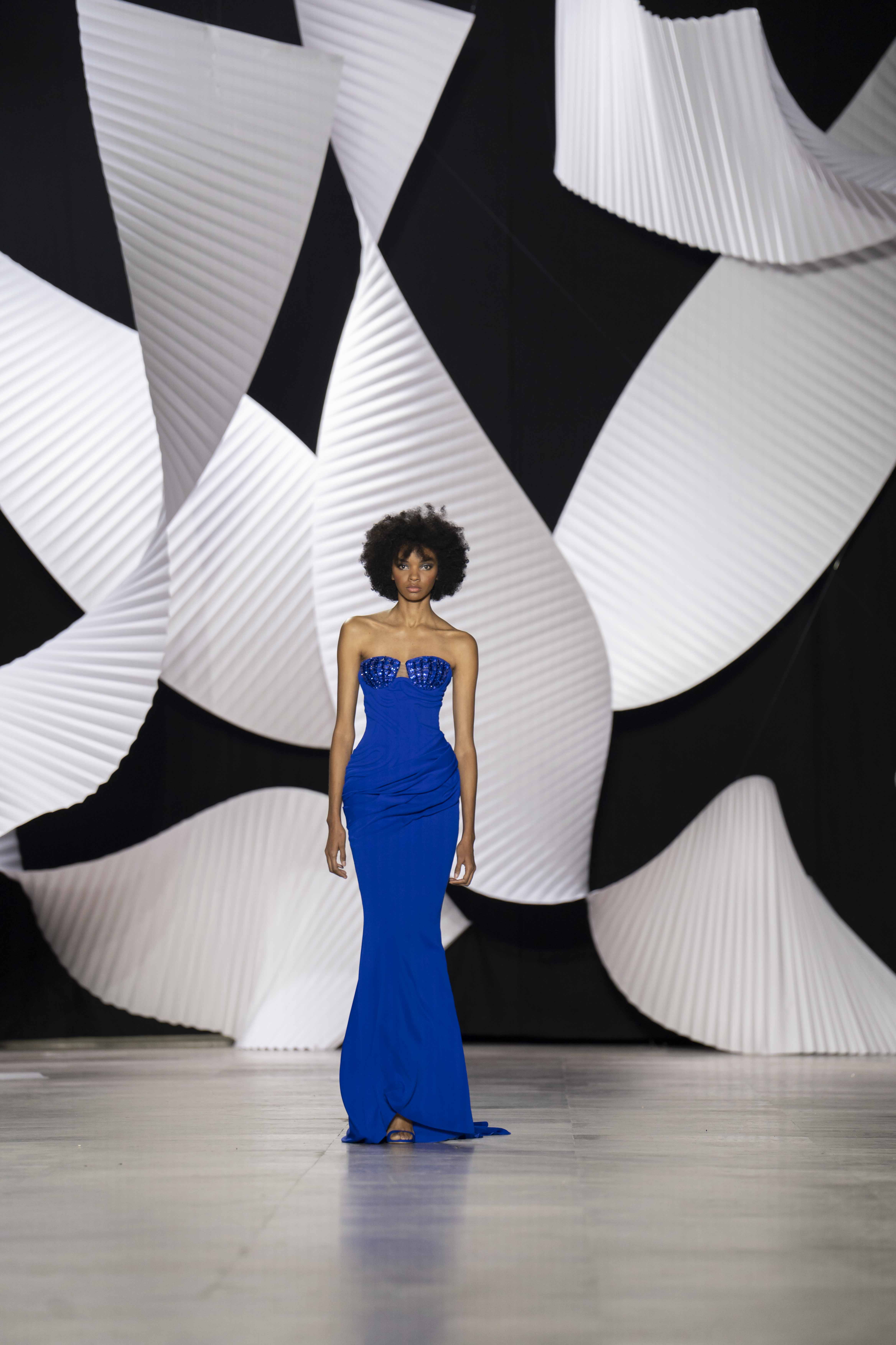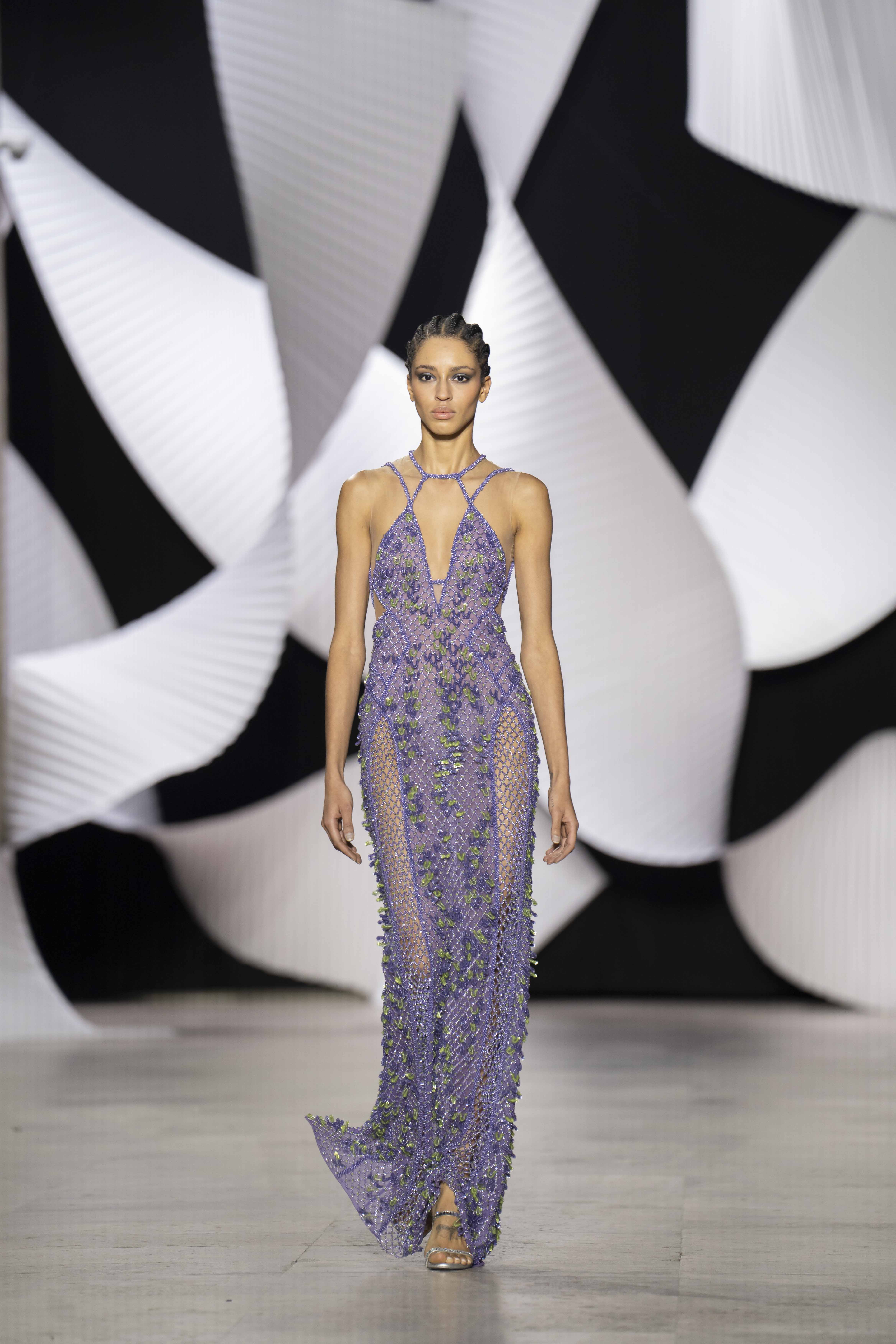 في قصر طوكيو Palais de Tokyo في باريس، كشفت المجموعة عن قامات شاعرية رائعة ممزوجة بتقنيّة عصريّة... ثمة خبرة مبتكرة ثلاثيّة الأبعاد تجمع بين أعمال النسيج المثيرة للاهتمام والفساتين المناسبة للصورة الظليّة، إلى جانب الأحجام الدراميّة، واللآلئ المتراقصة، التي تتحرك بفضل الأضواء الكاشفة، والمشالح المسرحية، والفتحات الشفّافة الرقيقة ولكن الجريئة، والشقوق العالية لتي تصل حتى الفخذ، والكورسيهات الجذابة التي تعانق الخصر، والمواد السائلة التي تغزو المنصّة، والجوانب غير المتماثلة التي تتناقض مع القطعة نفسها وتعانقها برقّة.