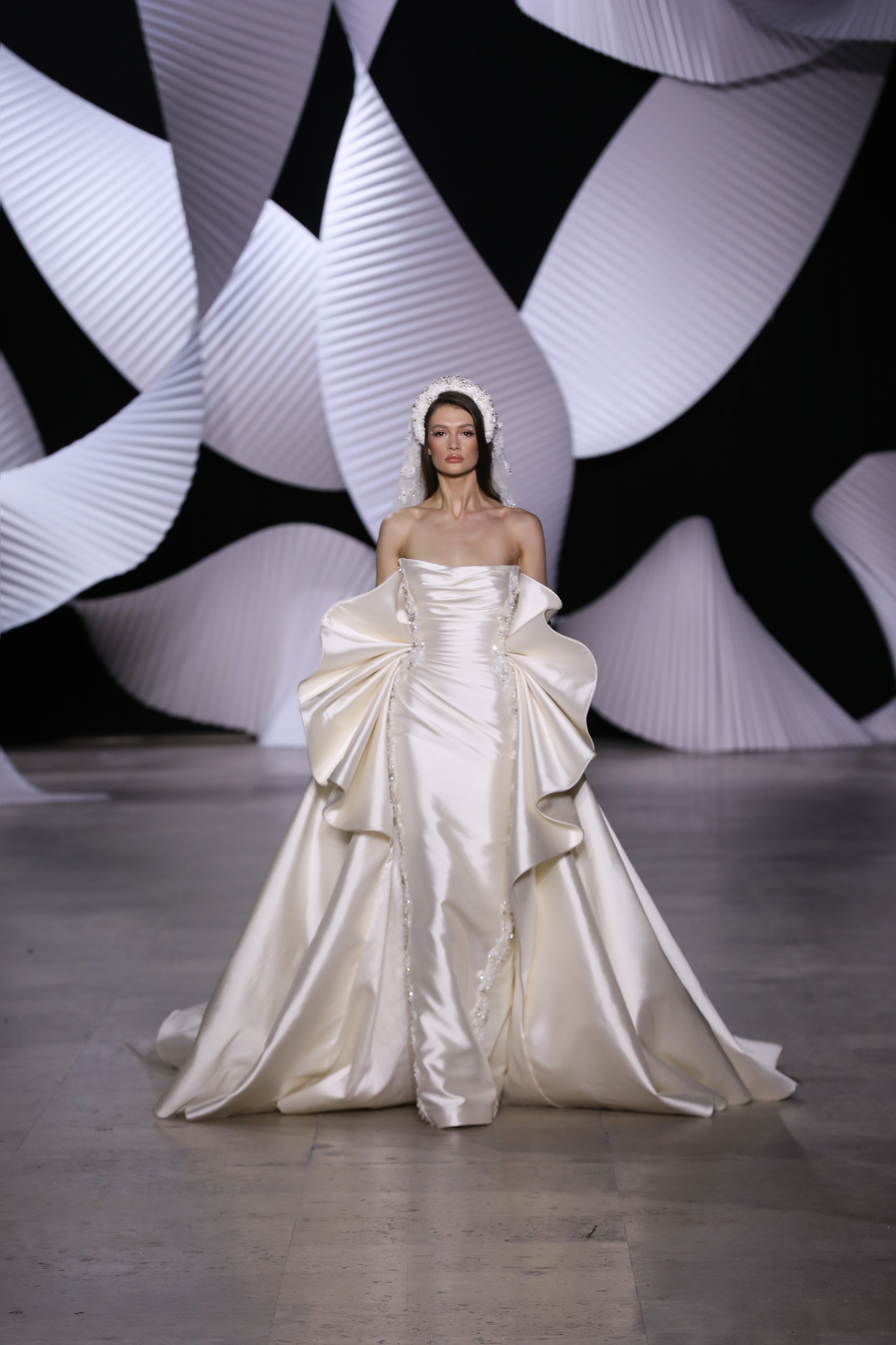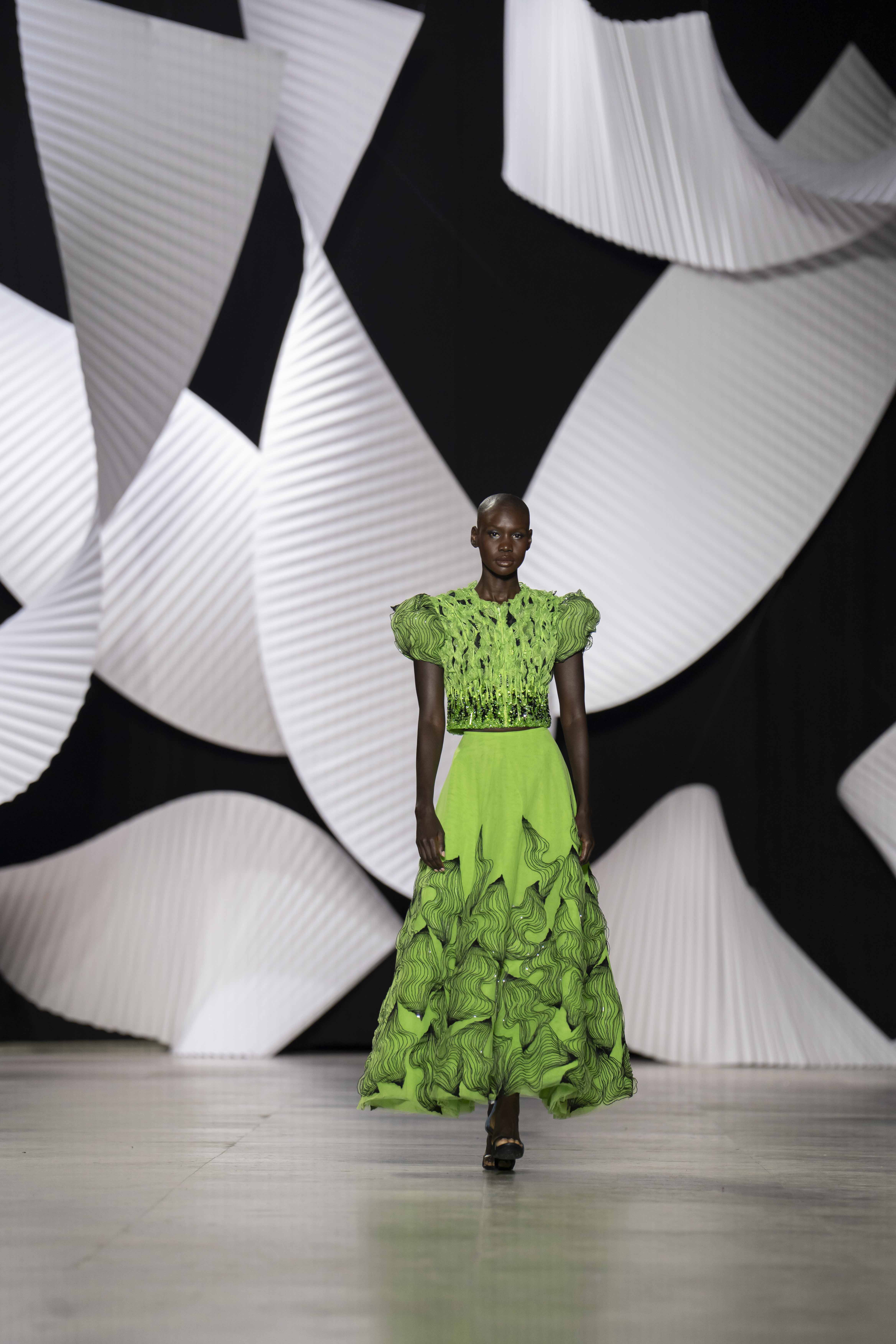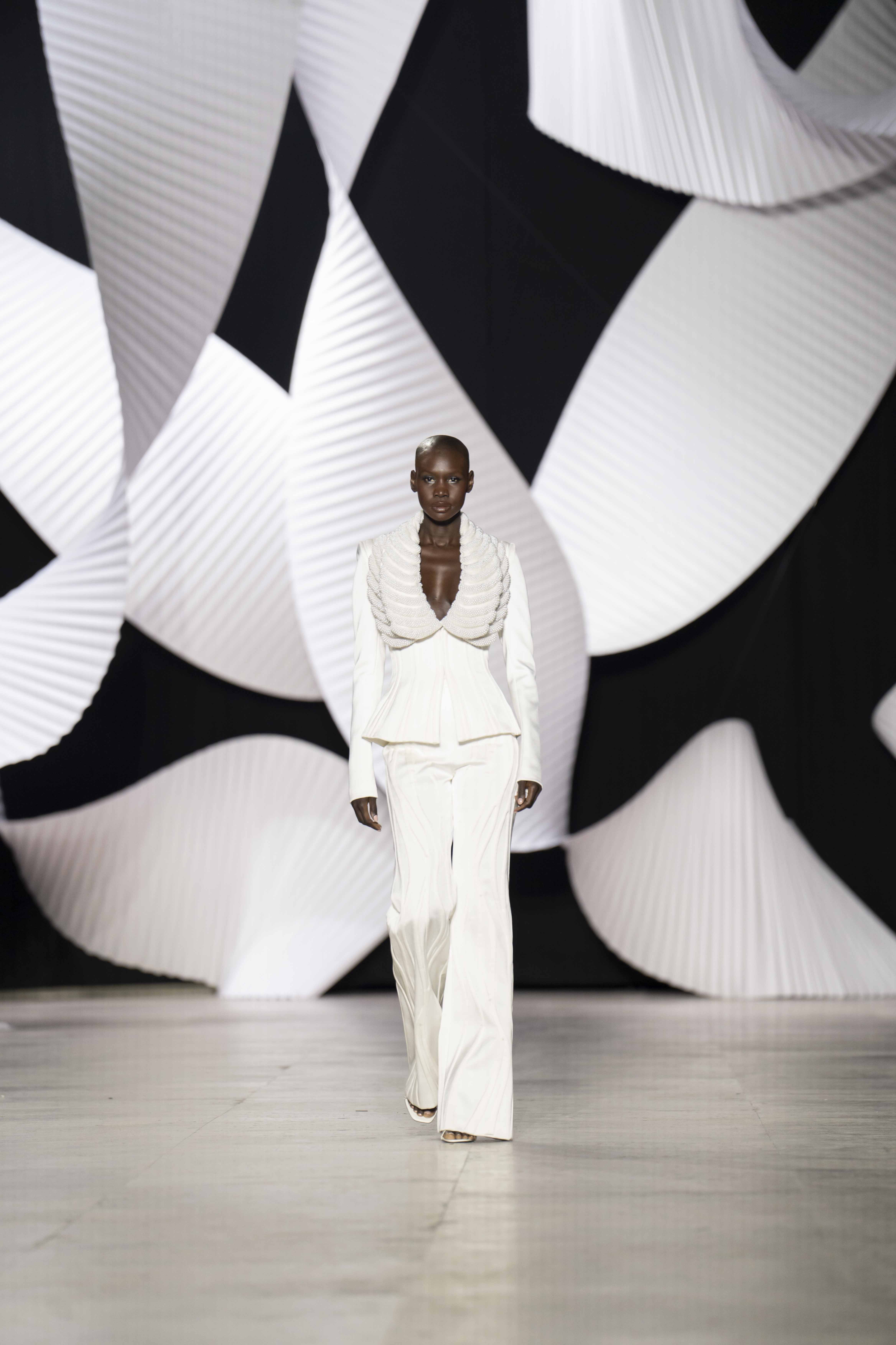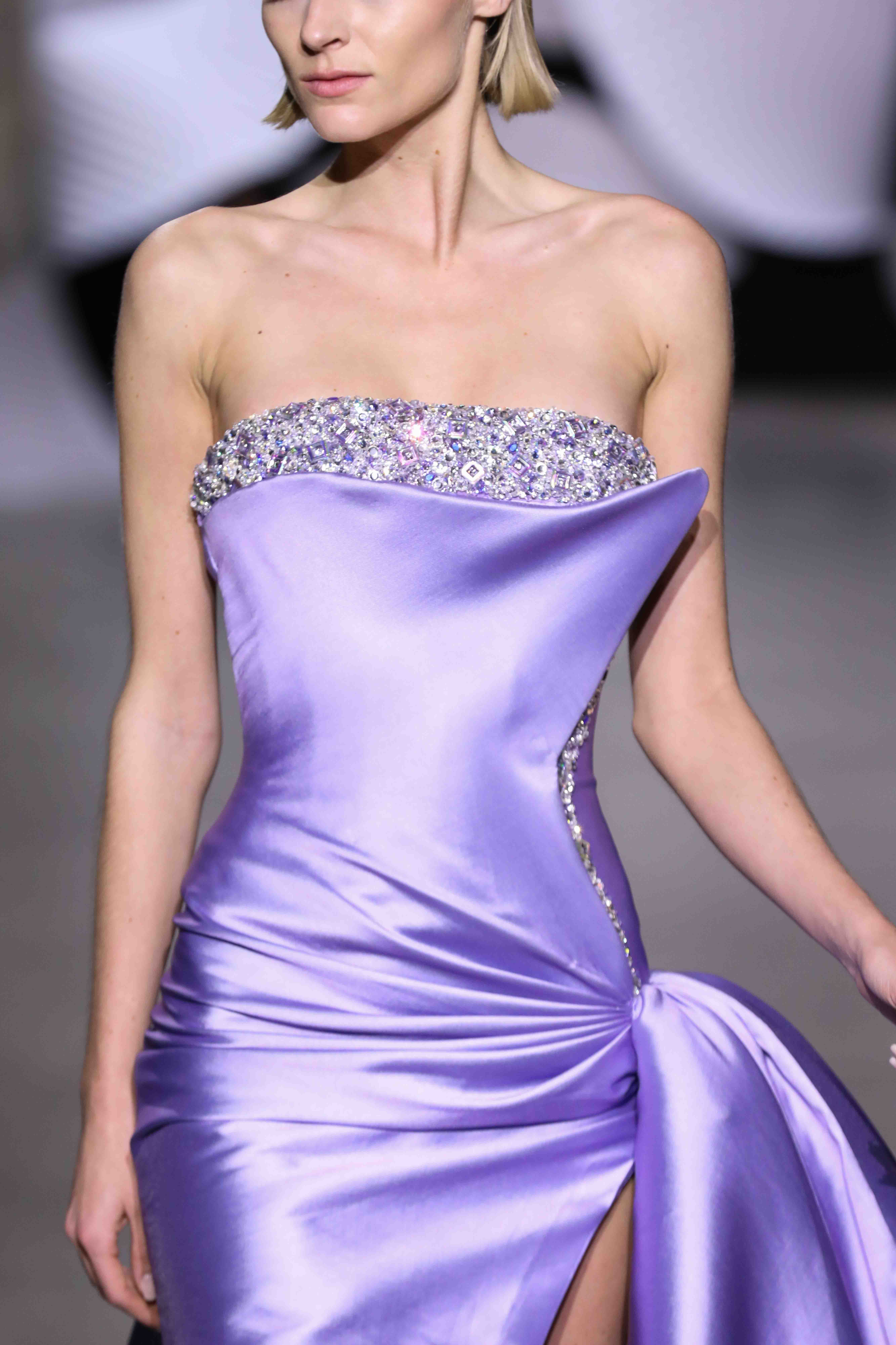 في قصر طوكيو Palais de Tokyo في باريس، كشفت المجموعة عن قامات شاعرية رائعة ممزوجة بتقنيّة عصريّة... ثمة خبرة مبتكرة ثلاثيّة الأبعاد تجمع بين أعمال النسيج المثيرة للاهتمام والفساتين المناسبة للصورة الظليّة، إلى جانب الأحجام الدراميّة، واللآلئ المتراقصة، التي تتحرك بفضل الأضواء الكاشفة، والمشالح المسرحية، والفتحات الشفّافة الرقيقة ولكن الجريئة، والشقوق العالية لتي تصل حتى الفخذ، والكورسيهات الجذابة التي تعانق الخصر، والمواد السائلة التي تغزو المنصّة، والجوانب غير المتماثلة التي تتناقض مع القطعة نفسها وتعانقها برقّة.