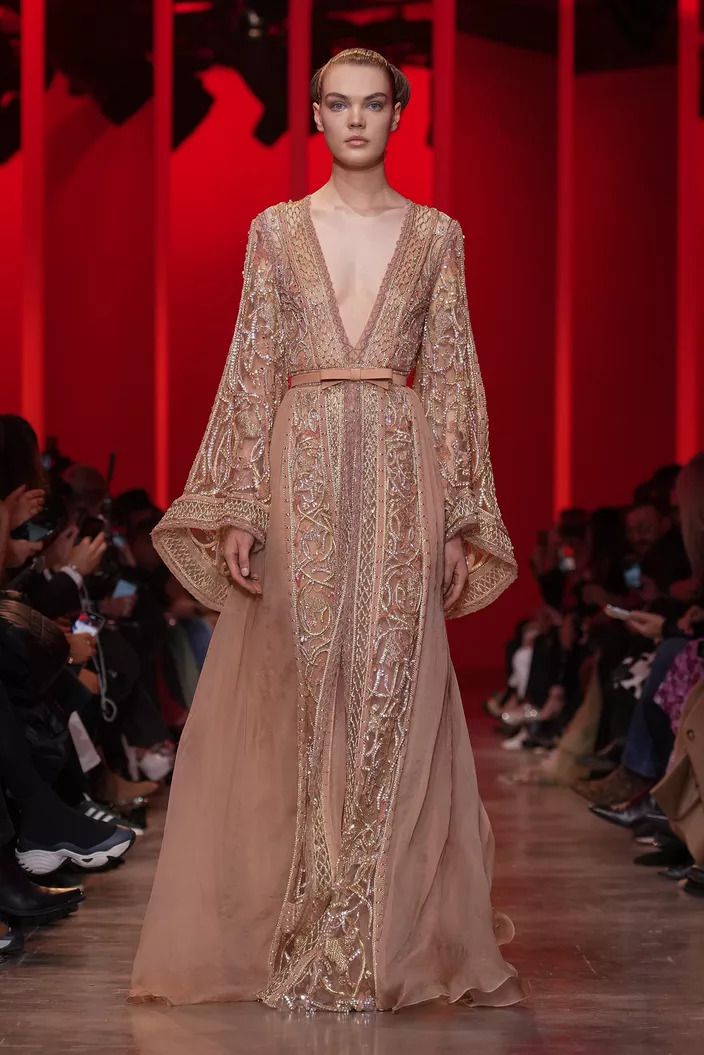 ظهرت المجموعة على شكل سيمفونية بصريّة ذات تفاصيل معقّدة وأنماط هندسية مستوحاة من الهندسة المعمارية المغربيّة. تمّت ترجمة هذه التصاميم بدقة على المشالح والفساتين، مع لمسات ذهبية تتشابك برشاقة مع الألوان الهادئة التي تعكس غروب الشمس. كان اهتمام صعب بالتفاصيل واضحًا عندما قام بدمج عناصر تذكّرنا بالتصميم الداخليّ المغربيّ، بما في ذلك الأعمال الحديديّة المثقبة والزهور المطعّمة، في الكورساجات والفساتين.