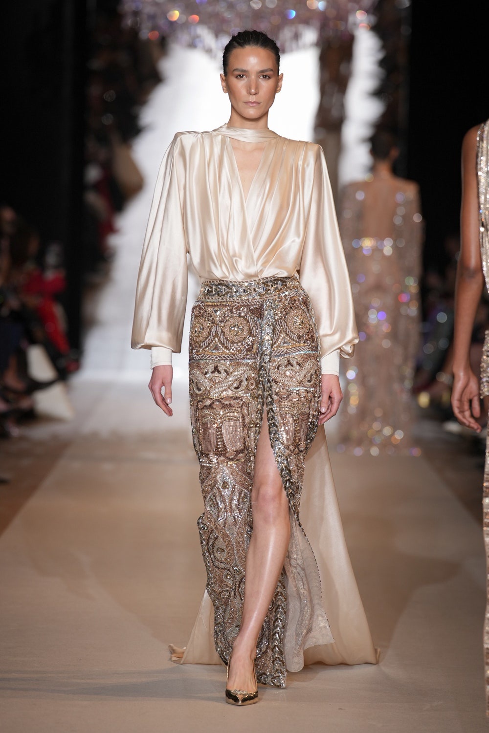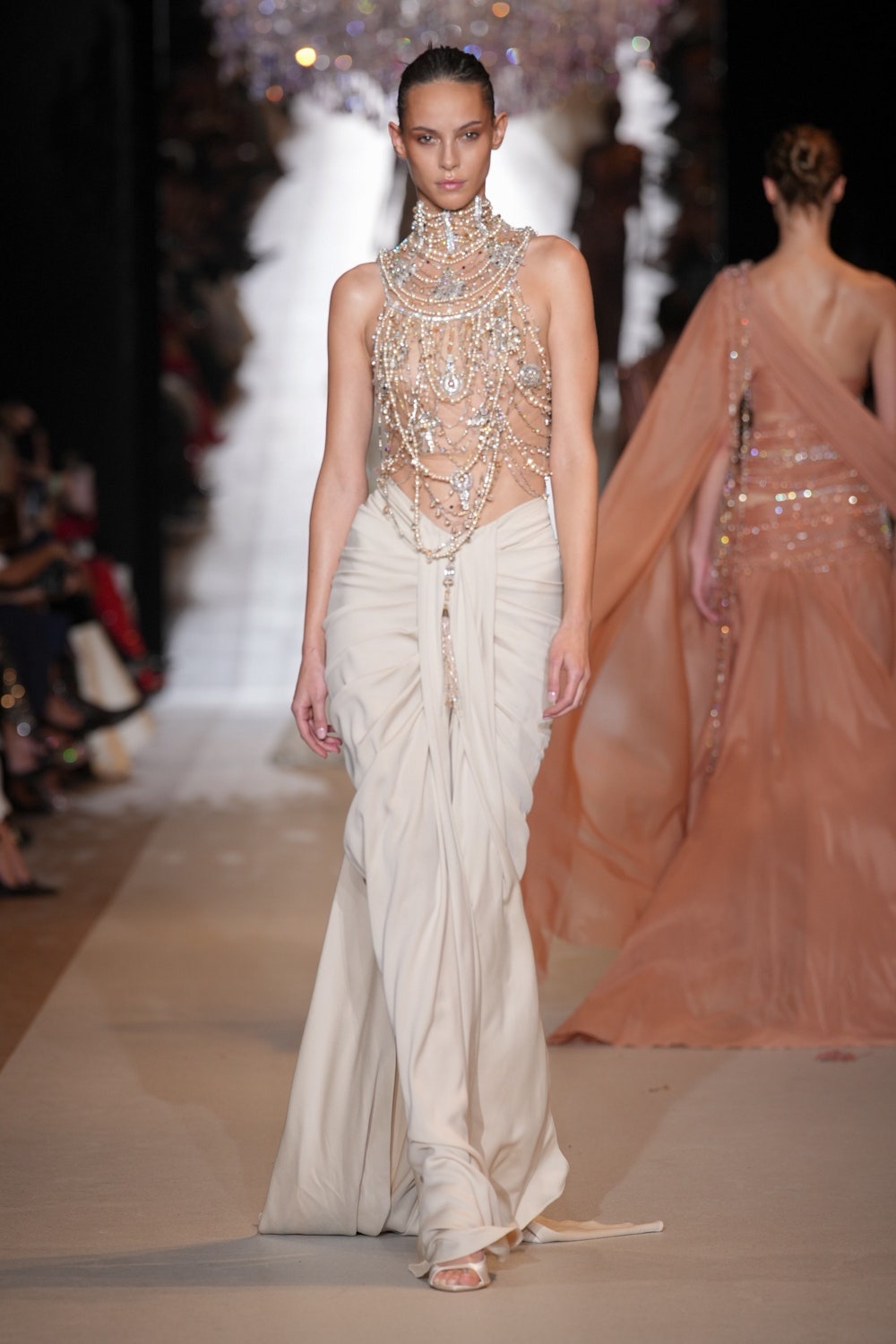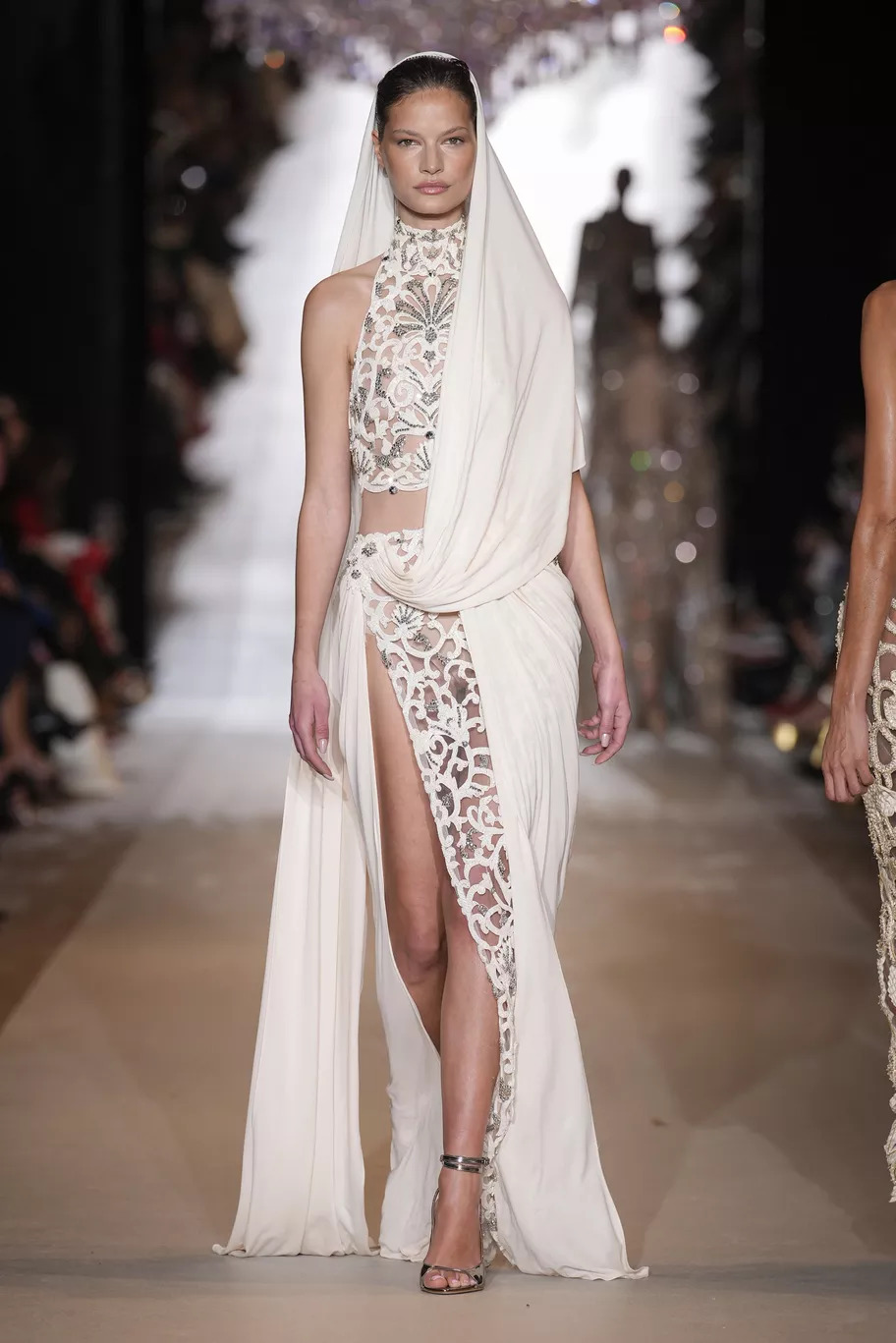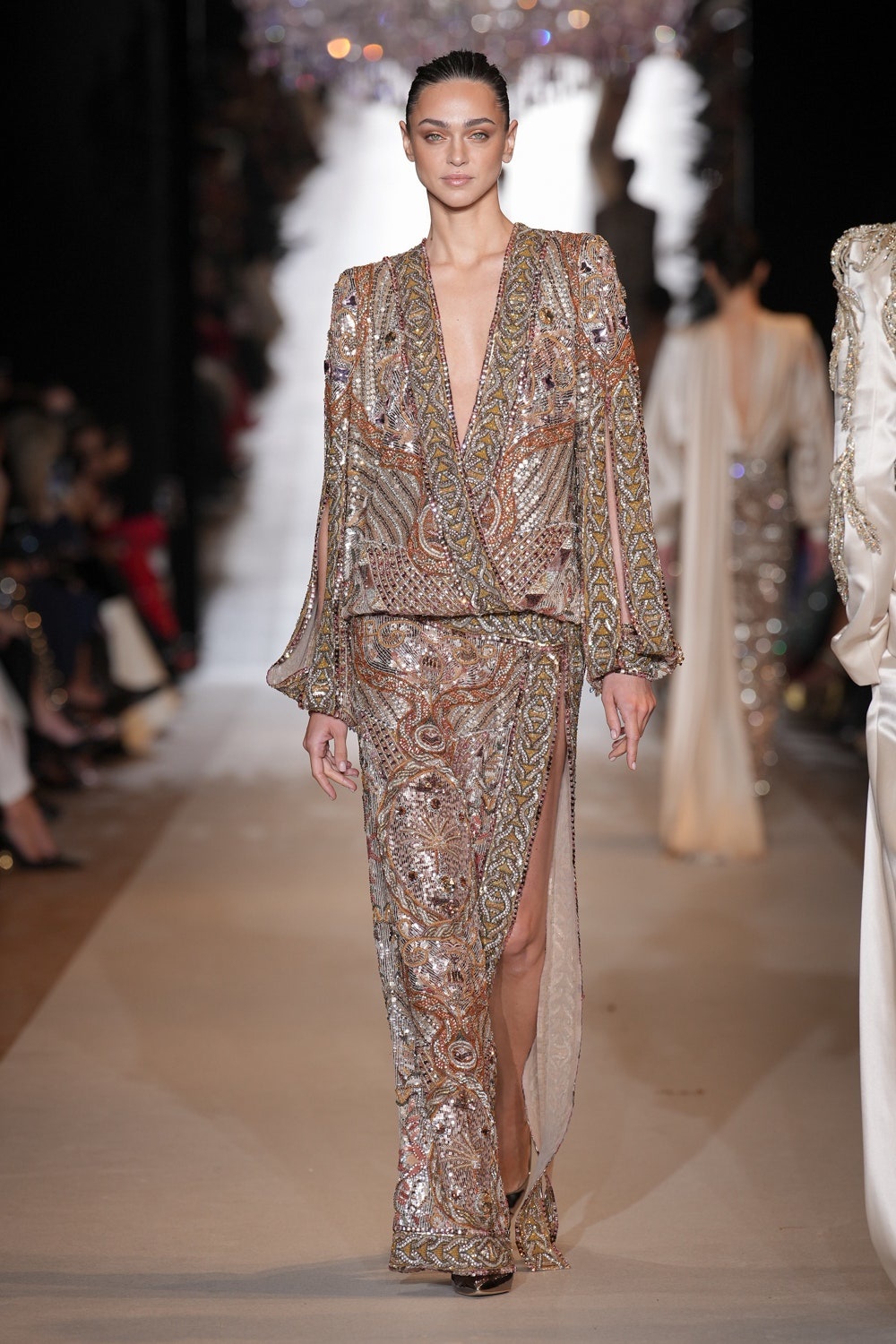 من خلال التقاط الروح الخالدة للحضارة الفينيقيّة، التي لا تزال تُلهم وتُدهش، يشيد زهير مراد بحبّ الفينيقيين للبحر من خلال هذه المجموعة الرائعة في تصاميمه للأزياء الراقية لربيع وصيف 2024 على منصّة باريس، إذ استوحى من هالة الشخصيّات النسائية العظيمة أو الآلهة مثل عشتروت أو إليسا أو تانيت ما عكس بريقهنّ على المجموعة.
