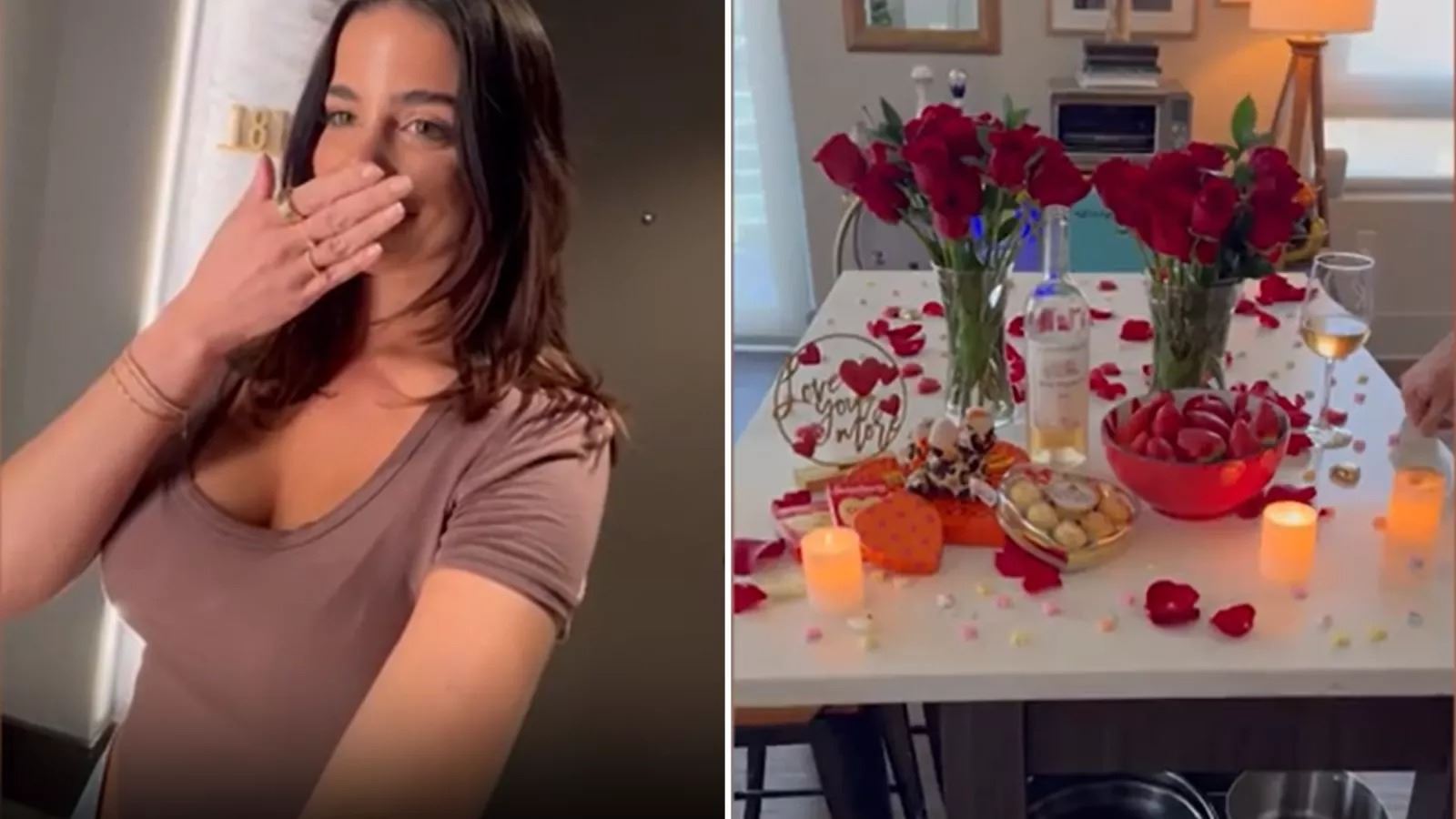 وفي حديث مع "نيوزويك"، أعربت  مؤثرة "تيك توك" ريغلر عن تفاجؤها بعد عودتها إلى المنزل ورؤية شريكها بعدما سكب لها كأساً من النبيذ ووضعه بجوار الباب عند دخولها عبر الردهة المليئة بالورود.
