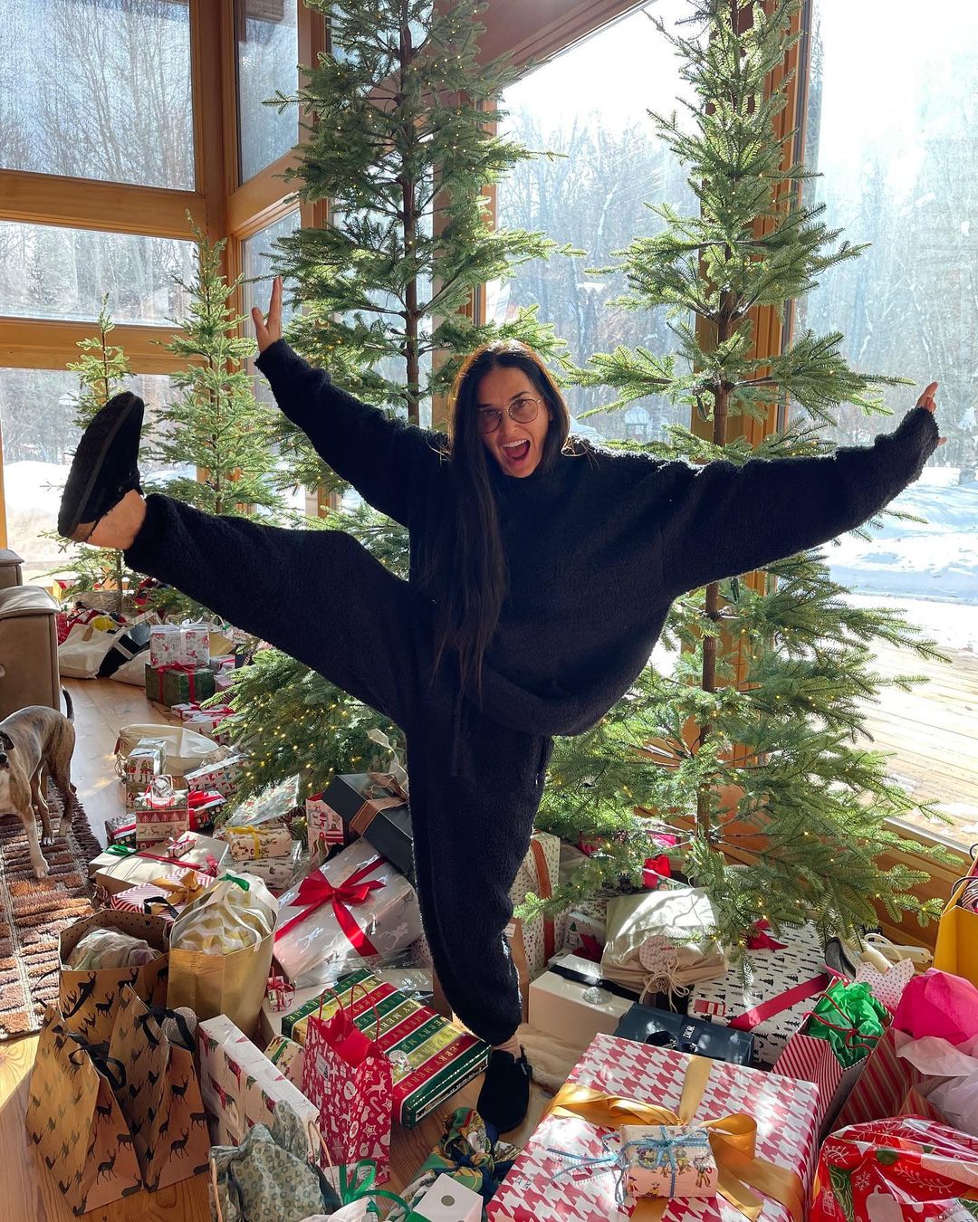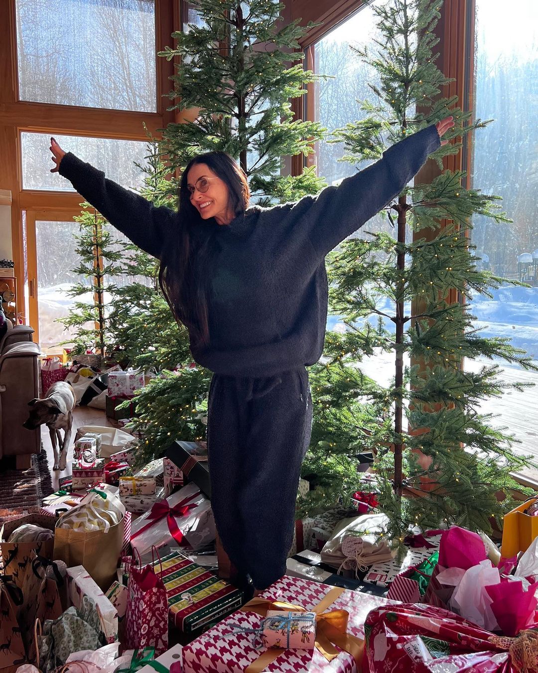 عشيّة الميلاد، شاركت ديمي مور بصور أمام شجرة الميلاد أيضًا. وهكذا، يمكننا اكتشافها وهي ترتدي ملابس الركض من دون مكياج، وتنتعل حذاء مع نظارات طبيّة على عينيها، تظهر فرحها بشجرة العيد. أكثر من 70000 معجب أحب هذا المنشور. دليل على أنّ مستخدمي الإنترنت يفضّلون ديمي مور بشكل طبيعي بدلاً من وجودها على السجادة الحمراء. في الستين من عمرها، لا تزال الممثلة جميلة، وعام 2023 يعدها ببعض المفاجآت الجميلة، أعلنت في 21 كانون الأوّل أنّها ستصبح جدّة قريبًا.