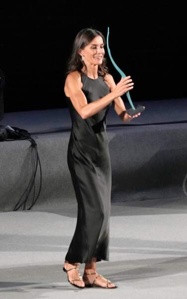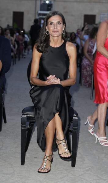 كالعادة، تألّقت ليتيزيا ملكة إسبانيا بأناقتها الفطرية. تمّ تسليط الضوء على لونها البرونزاج الكراميل من خلال هذا الفستان الطويل الأسود الجديد الموقّع من & Other Stories بسعر 89 يورو، حملت الملكة حقيبة كلاتش من Mango وانتعلت صندلاً من ماركة Magrit باللونين الأسود والفضي. تركت ملكة إسبانيا شعرها الطويل فضفاضًا ولامعًا.