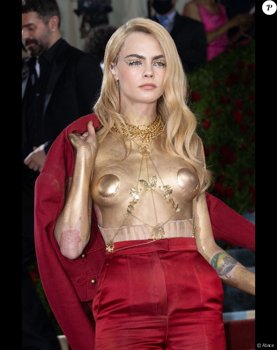 لم تمر كارا ديليفين مرور الكرام في حفل Met Gala هذا العام. ظهرت على السجادة الحمراء بصدر عارٍ مغطى بالكامل بطلاء ذهبي. تعمّدت البريطانية الكشفت عن وشومها، وكذلك عن بقع الصدفية على جسدها. استحوذت لوحة الجسد المتلألئة التي ظهرت فيها في هذا الحدث على الكثير من الاهتمام لدرجة أنها طغت على التقشير الأحمر، الموجود على مرفقيها. حتى إنّ معجبيها أشادوا بهذا التحيّز الإيجابي للجسم على الشبكات الاجتماعية.