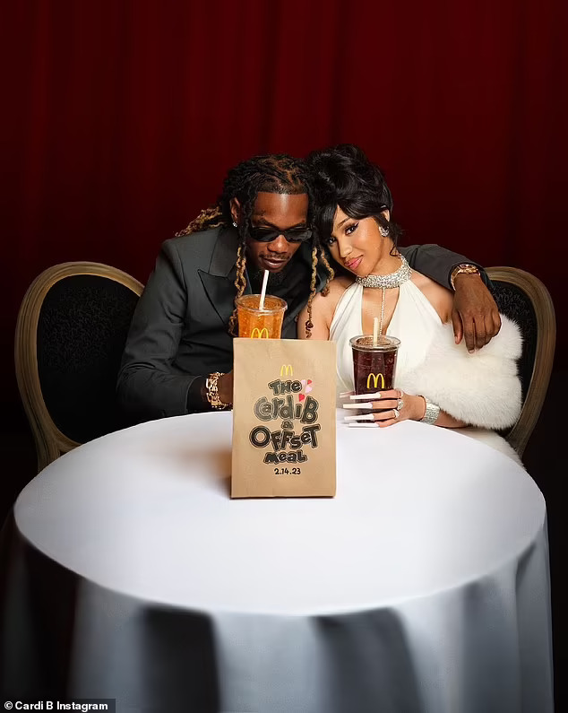 المغنّية Cardi B وزوجها Offset يتناولان الغذاء في 14 شباط في ماكدونالدز لسلسلة الوجبات السريعة.