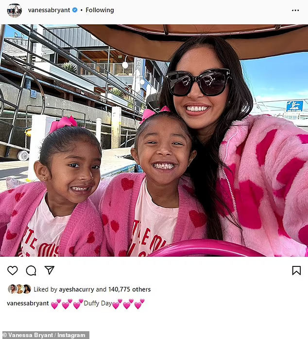 ارتدت أرملة كوبي براينت لاعب كرة السلّة الشهير، فانيسا براينت، سترة مطبّعة بالقلوب مع أطفالها.