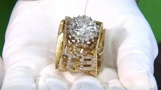 الخاتم المصنوع من الذهب والماس الطبيعيّ، قدّمه إلفيس بريسلي إلى أحد مغنّي الكورال في فرقته