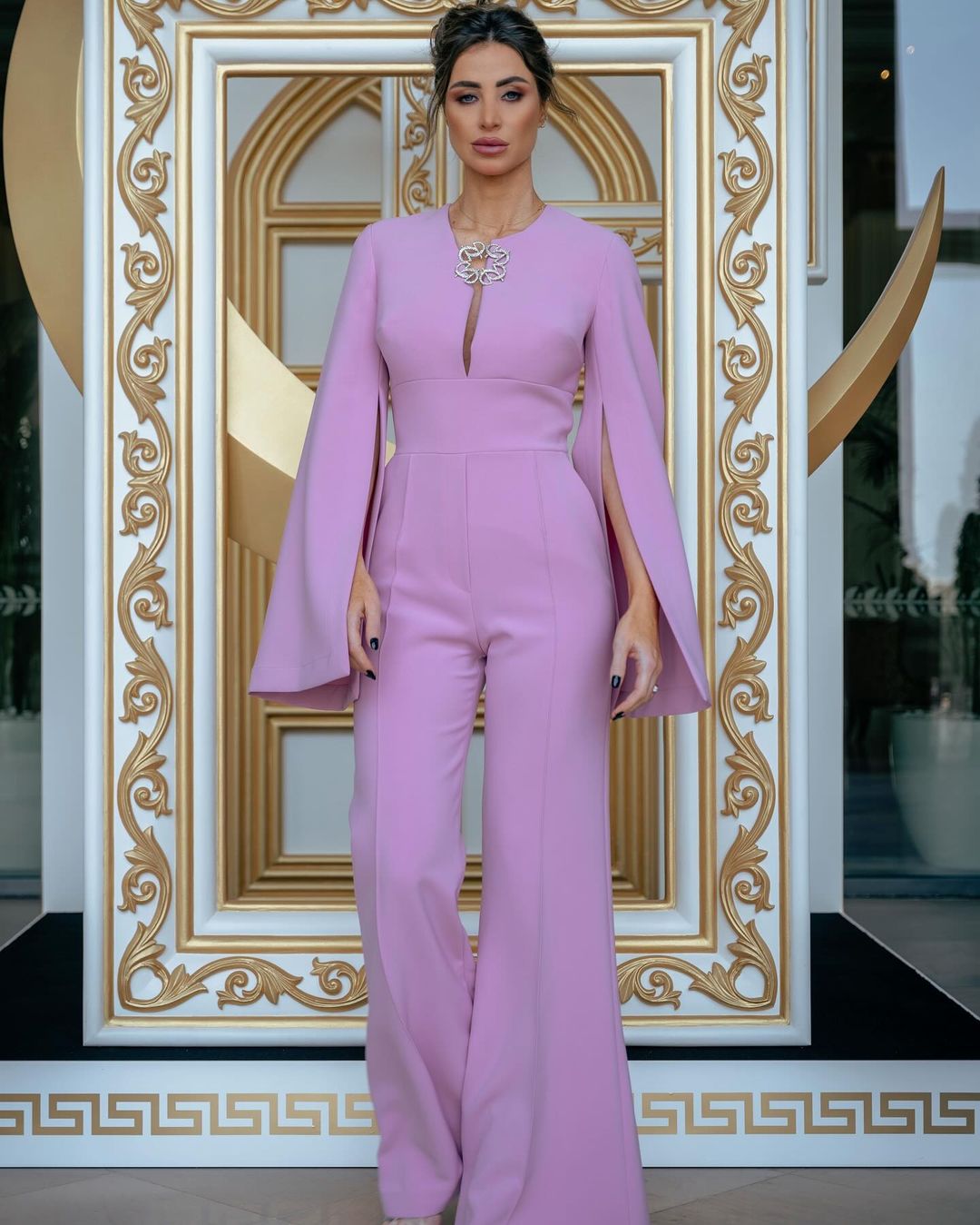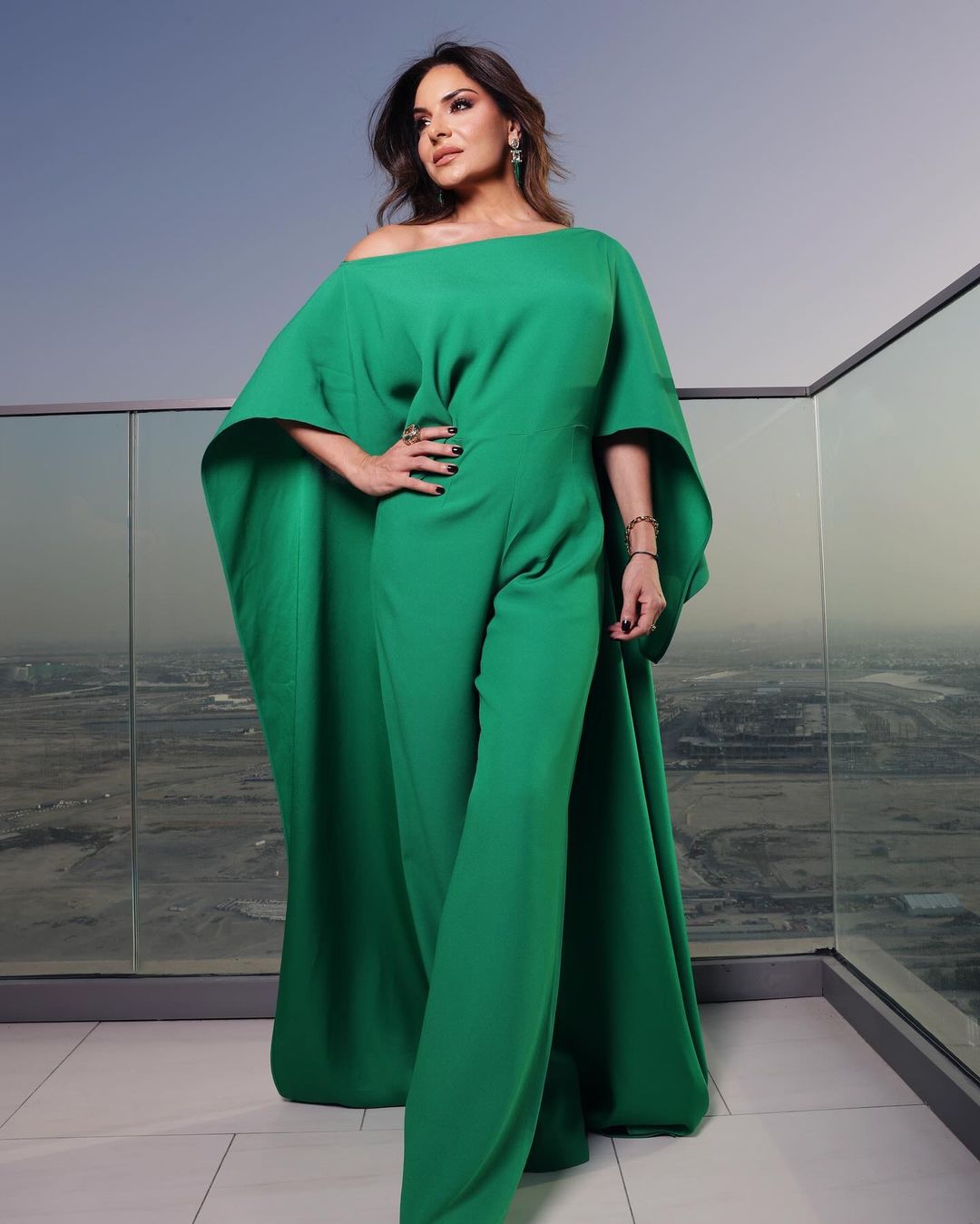 أمّا هيلدا خليفة فاختارت الجمبسوت الواسع، غير المتماثل الأكتاف يقترن بمشلح خلفي وأكمام مشالح.
