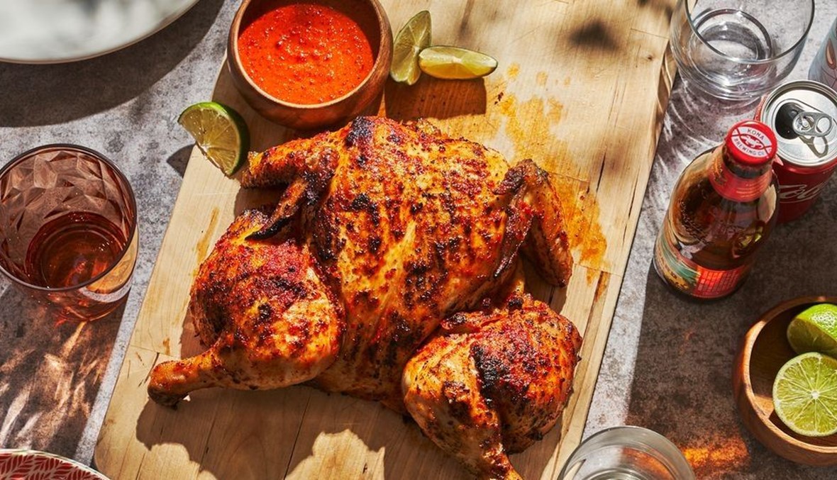 - أخرجوا الدجاجة من الثلاجة لمدة ساعة على الأقلّ قبل الطهو حتى تصل إلى درجة حرارة الغرفة، ثم سخّنوا المشواة لمدة 10 دقائق، ثم ضعوا الدجاجة واطهوها نحو 50 دقيقة.