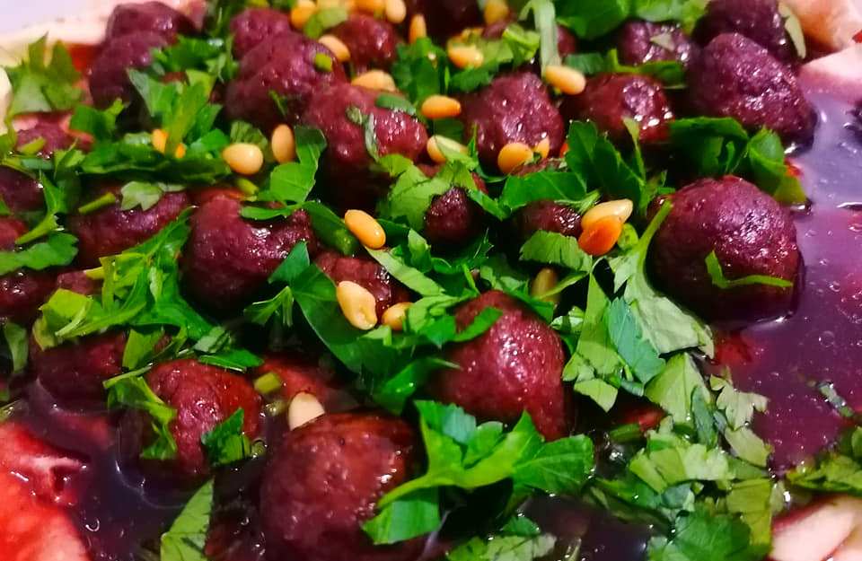 - الخطوة 1: في وعاء نظيف نضع اللّحمة، ونضيف إليها الملح، الفلفل الأسود، القرفة والسّمنة. نمزج جميع المكونات مع بعضها، ثم نجعلها كرويّة الشكل، ونشويها في الفرن.