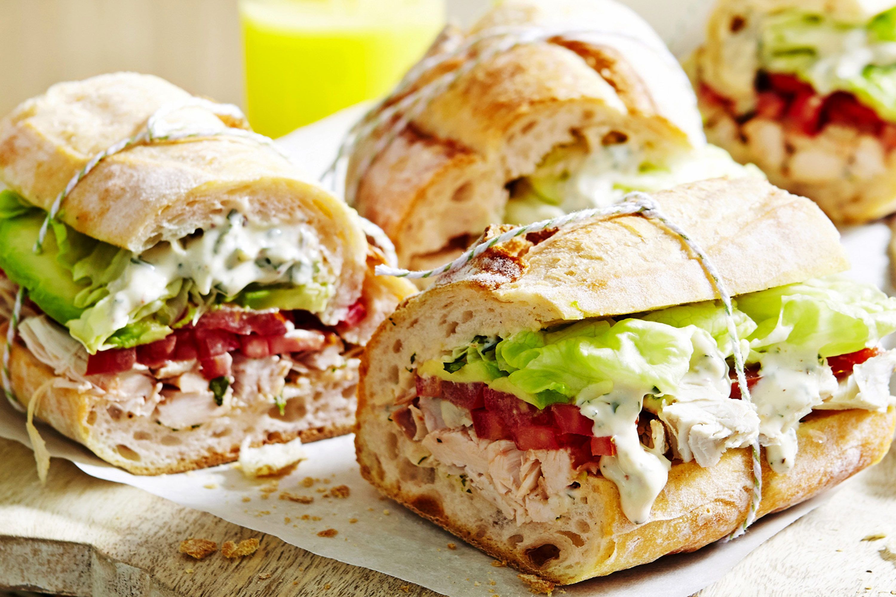 -في خبز الساندويش نضع الصوص، الدّجاج وقطع الأفوكادو، ثم نحمّصها ونقدّمها ساخنة.