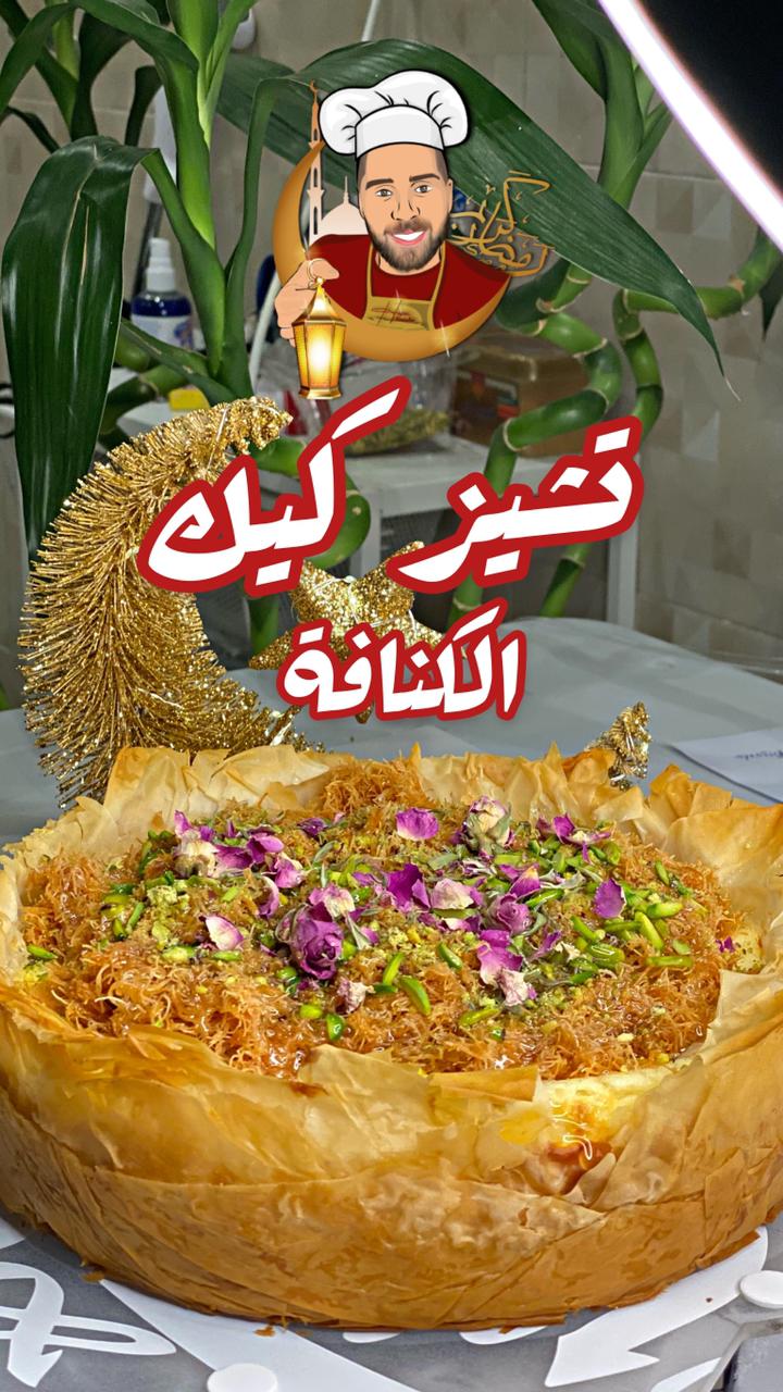 الوصفة عبارة عن طبقة من عجينة الكلاج محشية بالتشيز كيك وعلى وجهها كنافة.