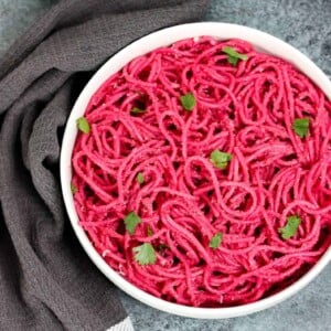 في محضّر الطعام نضع الشمندر، الثوم، اللبن أو الجبنة الكريمية، الملح، البهار والحبق، ونطحن جميع المكوّنات مع بعضها.