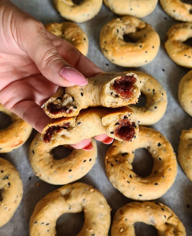 - قطعوا العجينة إلى قطع متساوية، ومدوها، ضعوا الحشوة في داخلها، ثم اقفلوها.