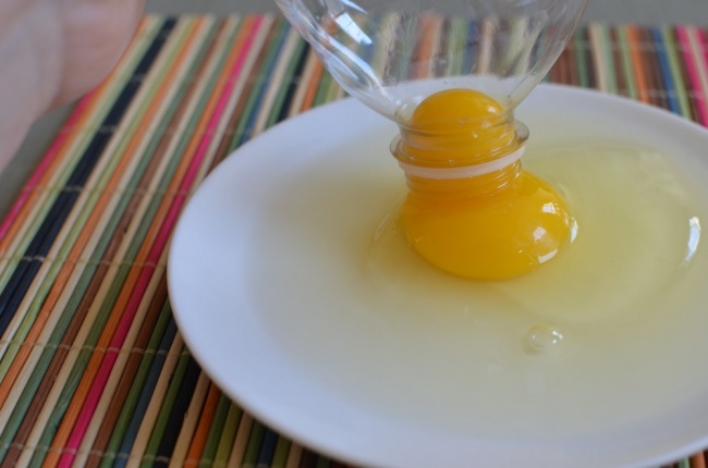 لفصل صفار البيض عن البياض يمكنكم استخدام زجاجة بلاستيكية نثبّتها على صفار البيض مع ضغط قليل حول الزجاجة، ثمّ سحب صفار البيض من بياض البيض إلى داخلها.