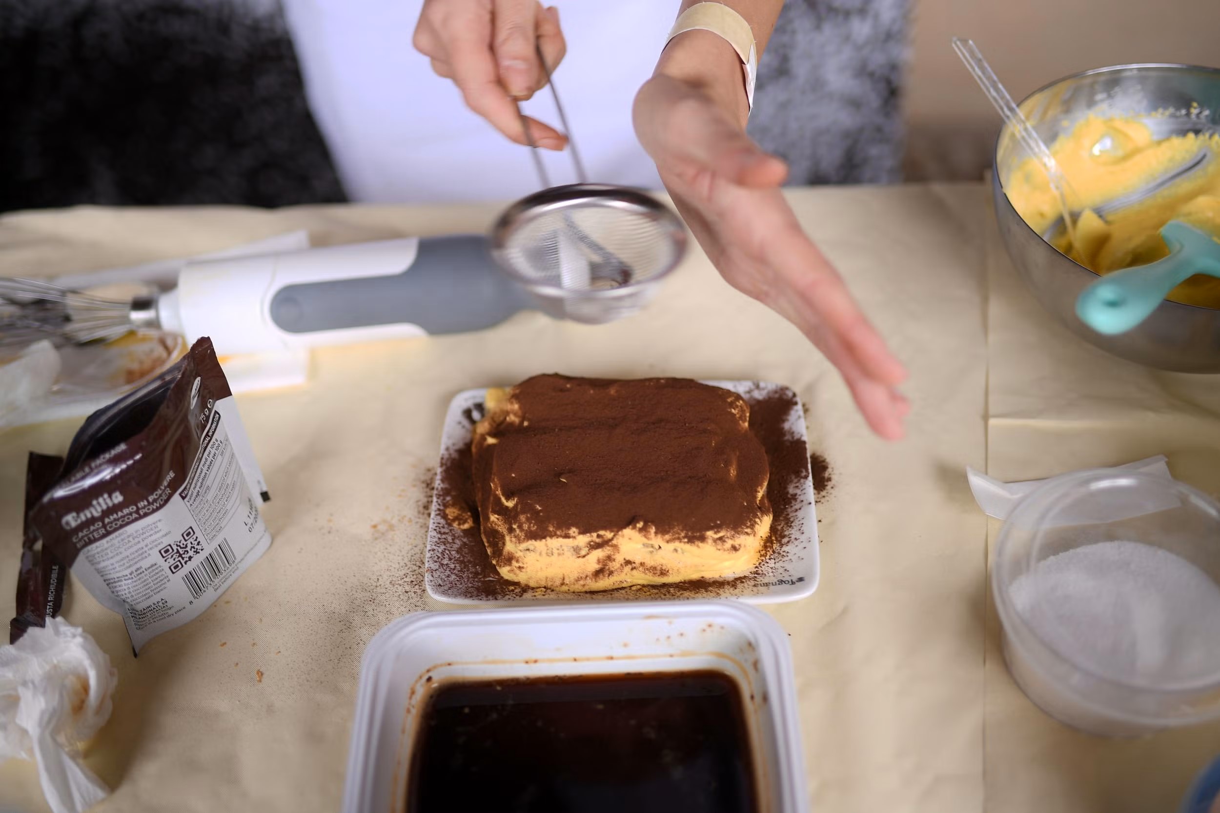 وصُنعت هذه الحلوى من ستة مكوّنات فقط: البيض والبسكويت والسكر والماسكاربوني والقهوة والكاكاو، وقد أُطلق عليها في الأصل اسم "تيرامي سو"، وهو يعني "التقطني".