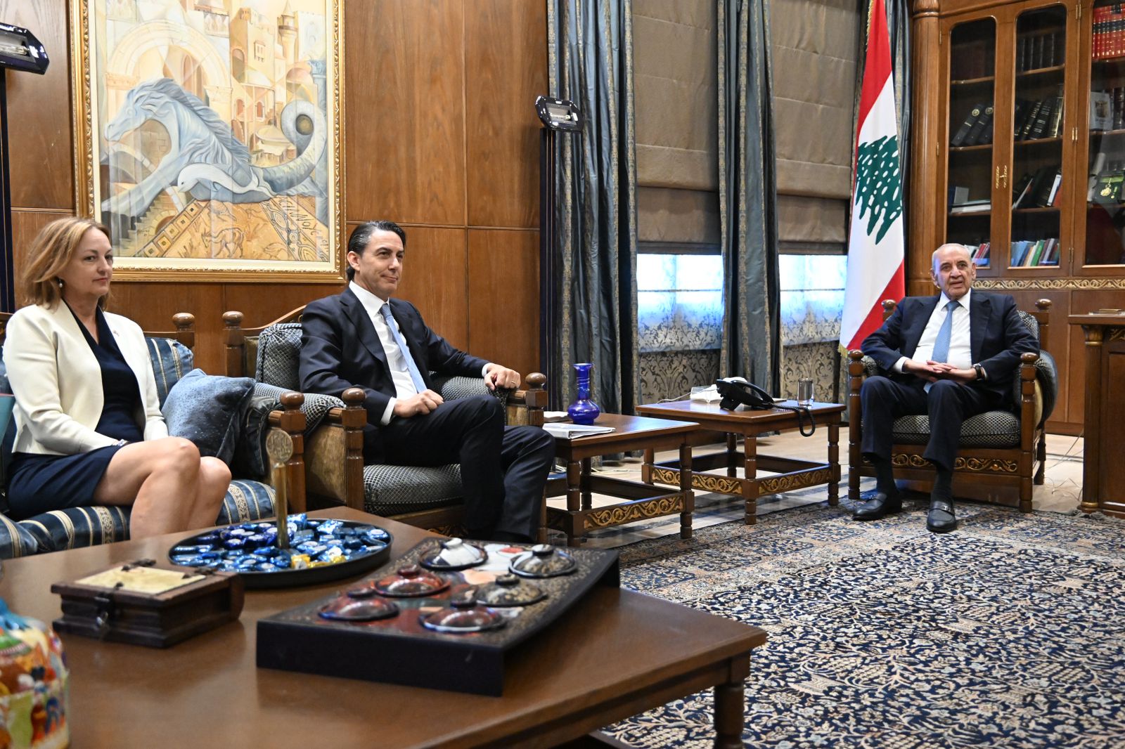 المحطة الأولى لهوكشتاين بدأت في عين التينة، حيث التقى رئيس مجلس النواب نبيه بري بحضور السفيرة الاميركية لدى لبنان ليزا جونسون والمستشار الإعلامي للرئيس بري علي حمدان.