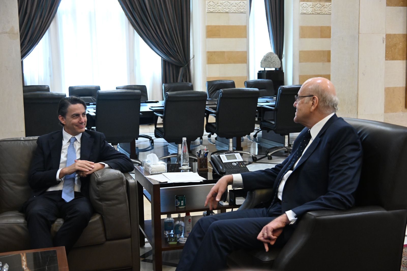 وواصل هوكشتاين جولته، وانتقل الى السرايا حيث التقى رئيس حكومة تصريف الأعمال نجيب ميقاتي، بحضور السفيرة الأميركية ليزا جونسون والوفد المرافق.