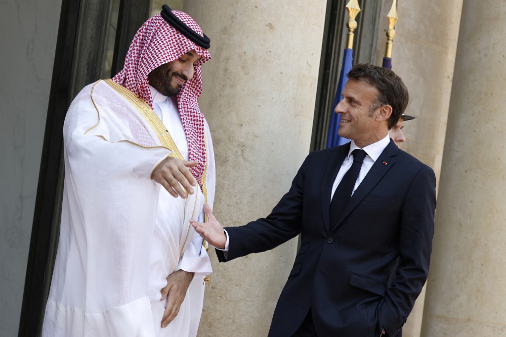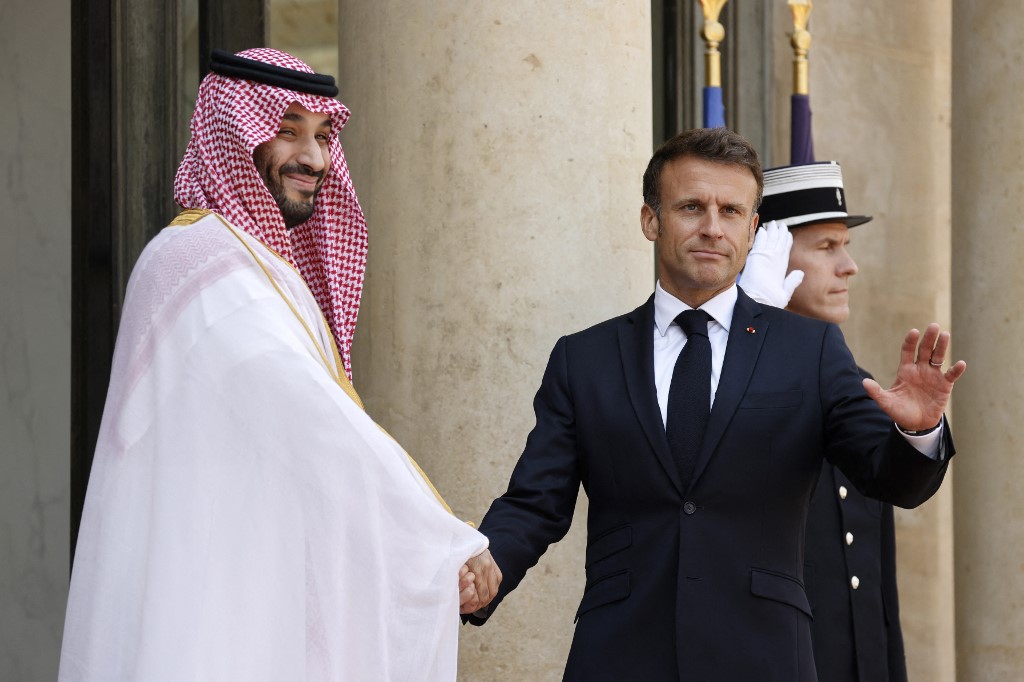 الرئيس الفرنسي إيمانويل ماكرون وولي العهد السعودي الأمير محمد بن سلمان (أ ف ب).