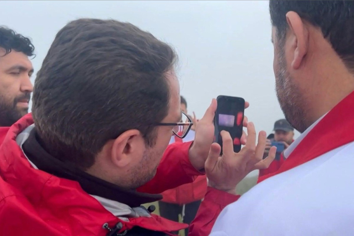 وبثّ التلفزيون الحكومي صورًا لعدد من عناصر الهلال الأحمر الإيراني وهم يسيرون وسط ضباب كثيف.