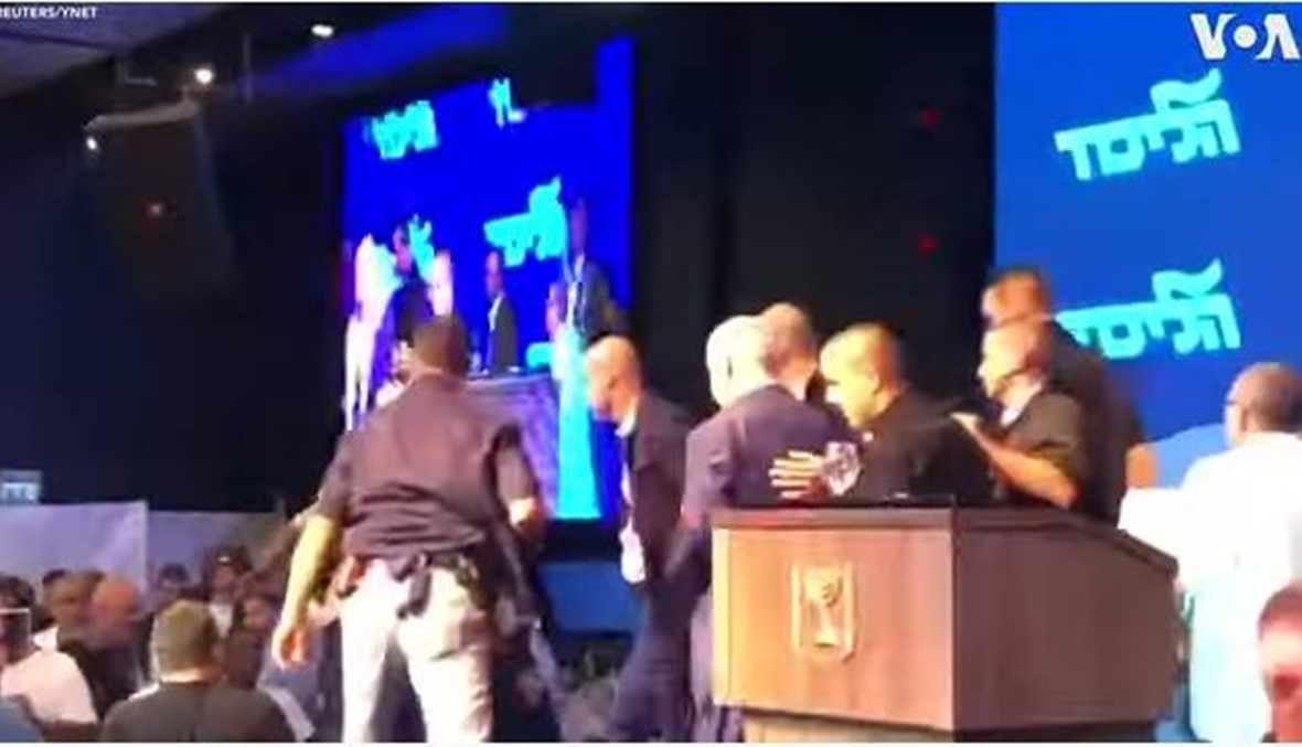 أظهرت لقطات تلفزيونية اندفاع حراس نحو رئيس الوزراء الإسرائيلي بنيامين #نتنياهو وإبعاده عن منصة كان يقف عليها أثناء تجمع انتخابي في جنوب #إسرائيل الثلثاء، وذلك بعد دوي صفارات الإنذار للتحذير من هجوم صاروخي محتمل من غزة.